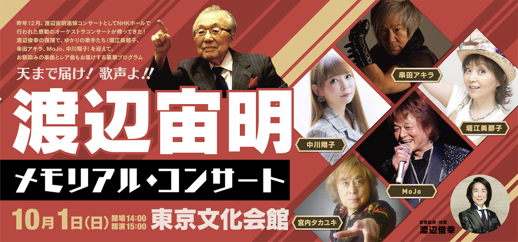 渡辺宙明先生のメモリアルコンサート!天まで届くように精一杯歌います。是非お出かけください。