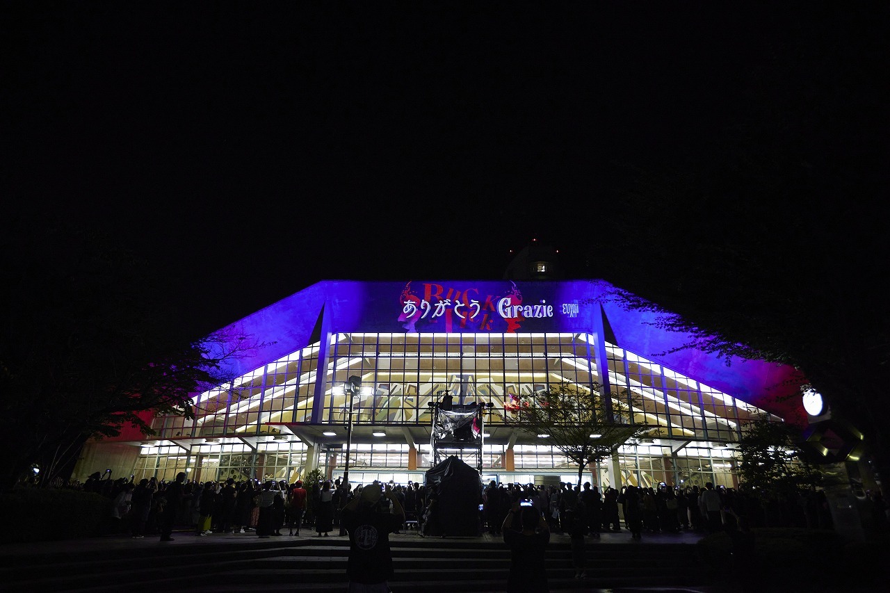 終演後、外に出た観客に嬉しいサプライズが用意されていた。会場の外観に映し出されたプロジェクションマッピングで、世界各国の言葉で“ありがとう”のメッセージや、メンバー直筆のメッセージが流れた。なんたるホスピタリティ。その心遣いに感嘆の声があがった。
