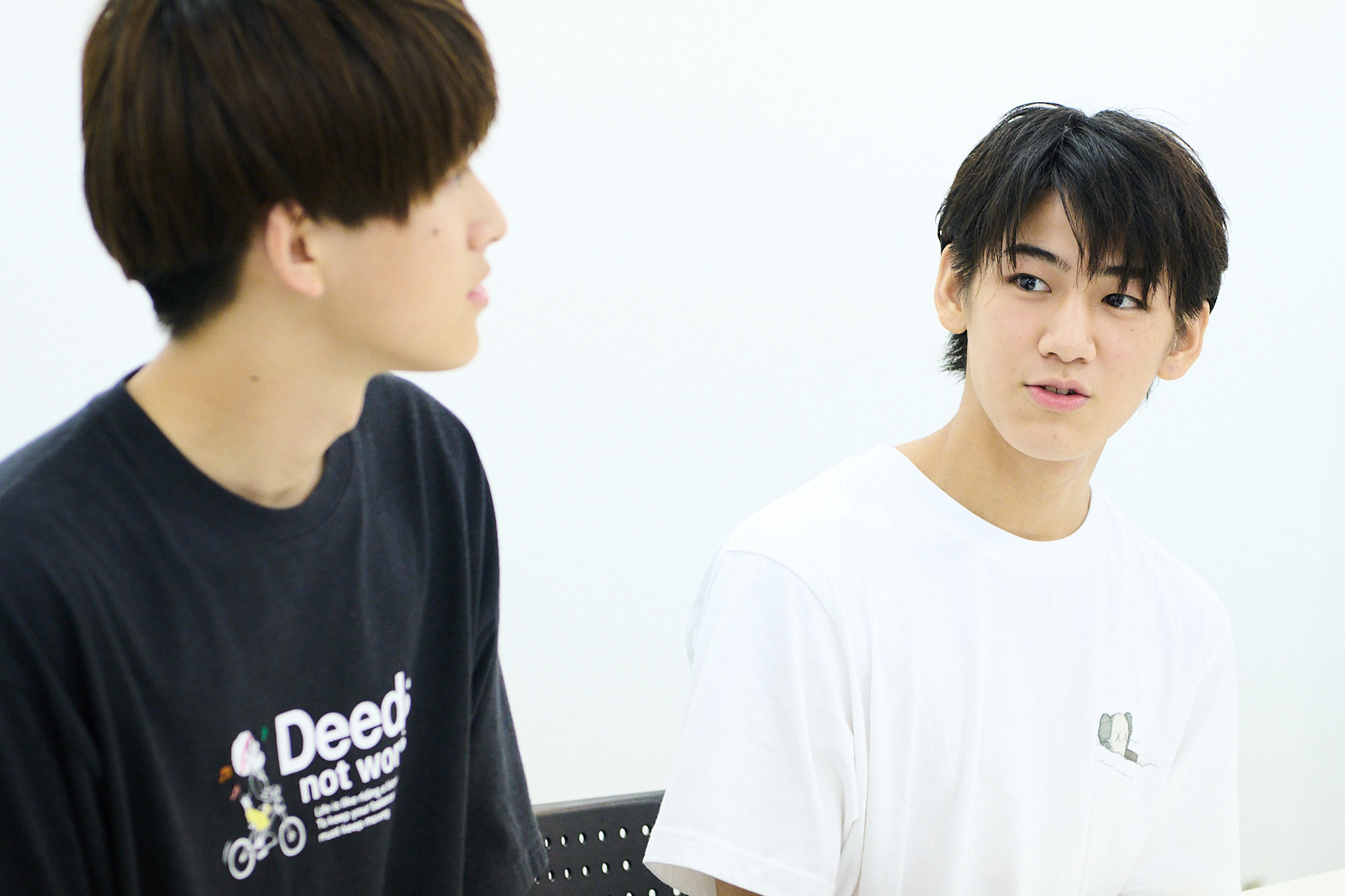 明石:僕は最初、映像系に興味を持ってたんですけど、「何かの作品に出たい」という気持ちはありました。舞台はそんなに詳しくないし、ゼロからのスタートやったんですけど、演技は事務所のレッスンを受けて興味を持っていたので、受けさせてもらって合格させていただきました。