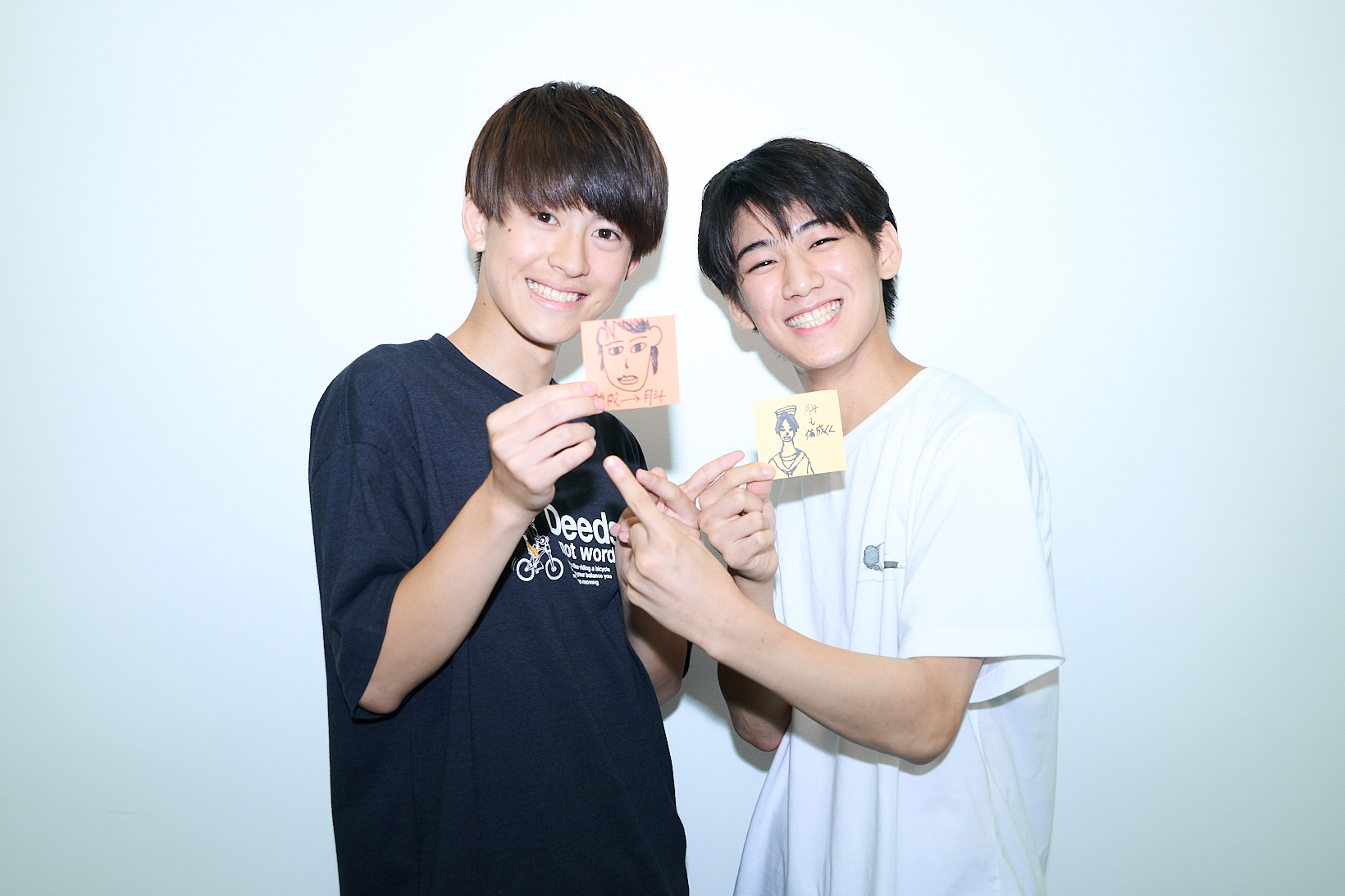 お互いの似顔絵を描いてくれた明石侑成、石原月斗