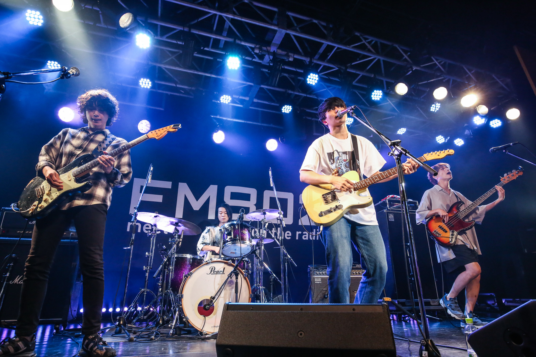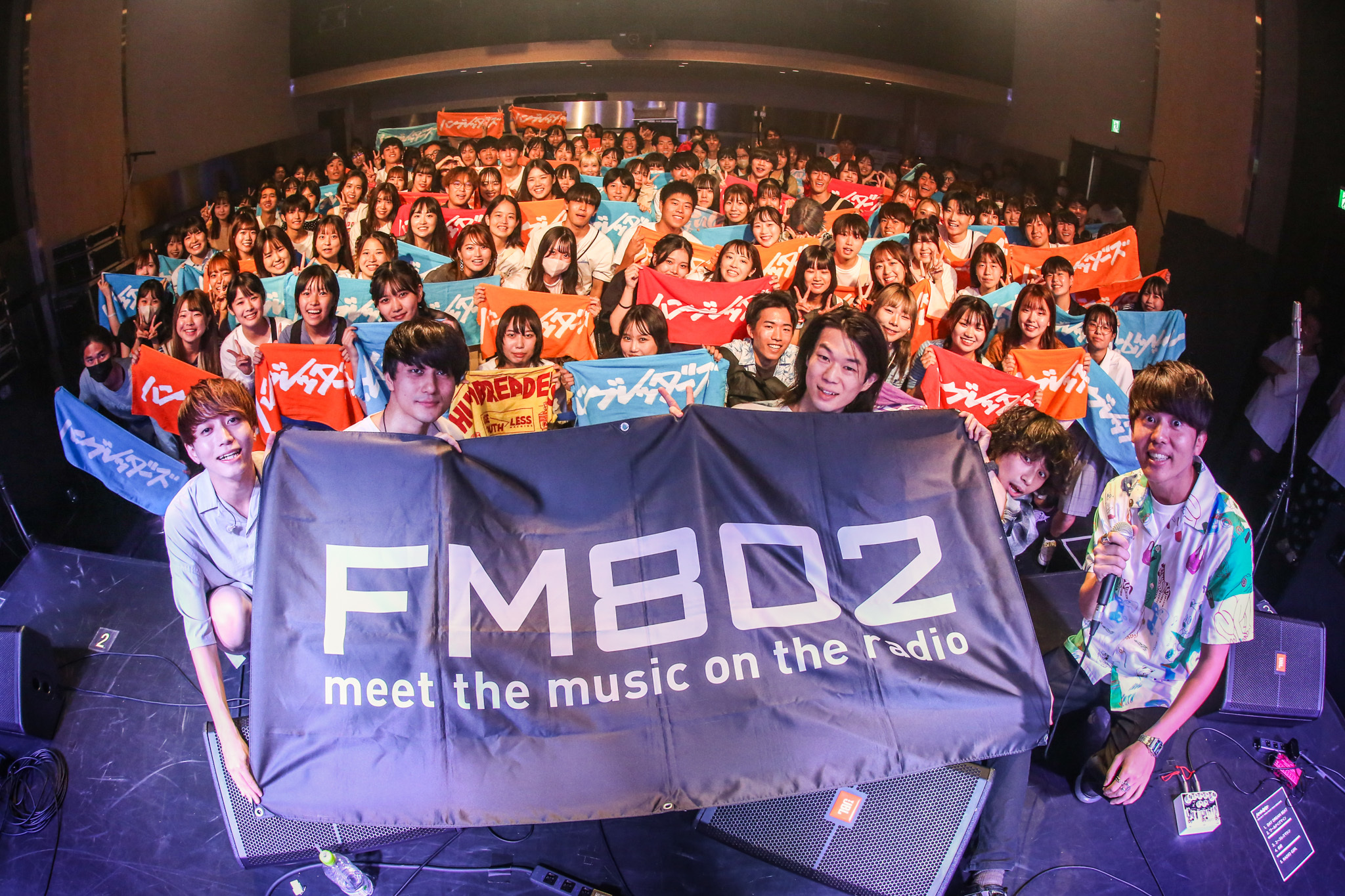 続く「名前」では、一転してエモーショナルなプレイを展開。終了後には樋口が「リスナーへの手紙に思えた」と絶賛するような熱がこもるアクトで観客をグンと引き込む 。そして 最後のMCではムツムロがリスナーに感謝を伝えながら も、 「4人で(番組を)やれたらいいですね!」とちゃっかりFM802におねだりして、 締めくくりはムツムロが中学の時にラジオパーソナリティに向け書いたという「RADIO GIRL」。「さよなら」のリフレインが青く響き、まさに“今日はここまで”……と思いきや、アンコールに こたえて「フェイバリットソング」を。アッパーチューンに誰もが大いに沸き、4人も目を合わせてパフォーマンス 。ラストは思いと声を一つにしてゴールし、 記念すべき公開収録は興奮冷めやらぬなか終演を迎えた。