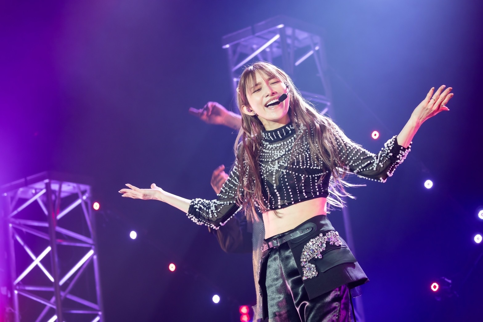 アンコールでは、誕生日のサプライズとして、lolのメンバーがケーキを持ってステージ上に上がると、会場全員で「ハッピーバースデートゥーユー」と大合唱する一幕も。「今日1日、アンコールまで、めちゃめちゃ楽しい誕生日を過ごせました!ありがとう」と改めて感謝の言葉を話すと、「ここで最後に皆さんにご報告したいことがあります。嬉しいご報告です。私、来年は25周年になるんですよ。来年のプランを、もう色々立てております!その中のひとつの企画を10月に発表をします!10月はあとちょっとじゃん(笑)! 25周年を盛り上げていきたいので、楽しみにしてくれていたら嬉しいです」と満面の笑みを浮かべた。