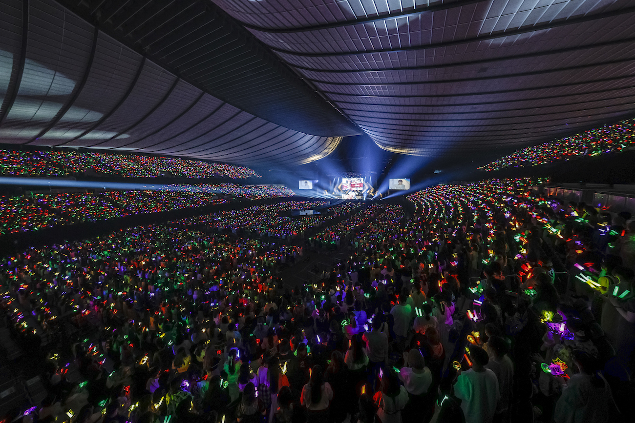 バンドメンバー、ダンサーを丁寧に紹介したあとは、夏を感じさせる軽やかなダンスナンバー「Piece Piece Piece」へ。さらに、トロッコに乗り込みアリーナ客席通路を進みながらの「SUNNY」と「最強Drive!!」。拳を突き上げ<心の針が指す方角へ舵を切れ>と背中を押すだけでなく、<世界のどこに居ても 絶対見つけるから>と約束する「Carry Forward」。そして、本編ラストのナンバーは『Plusss』を締めくくる「VOYAGE」。<この4人だから><どこだって行ける>し、<10年後も、この景色を、君と一緒にずっと観たい>。メンバーもcrewも、気持ちはひとつだ。