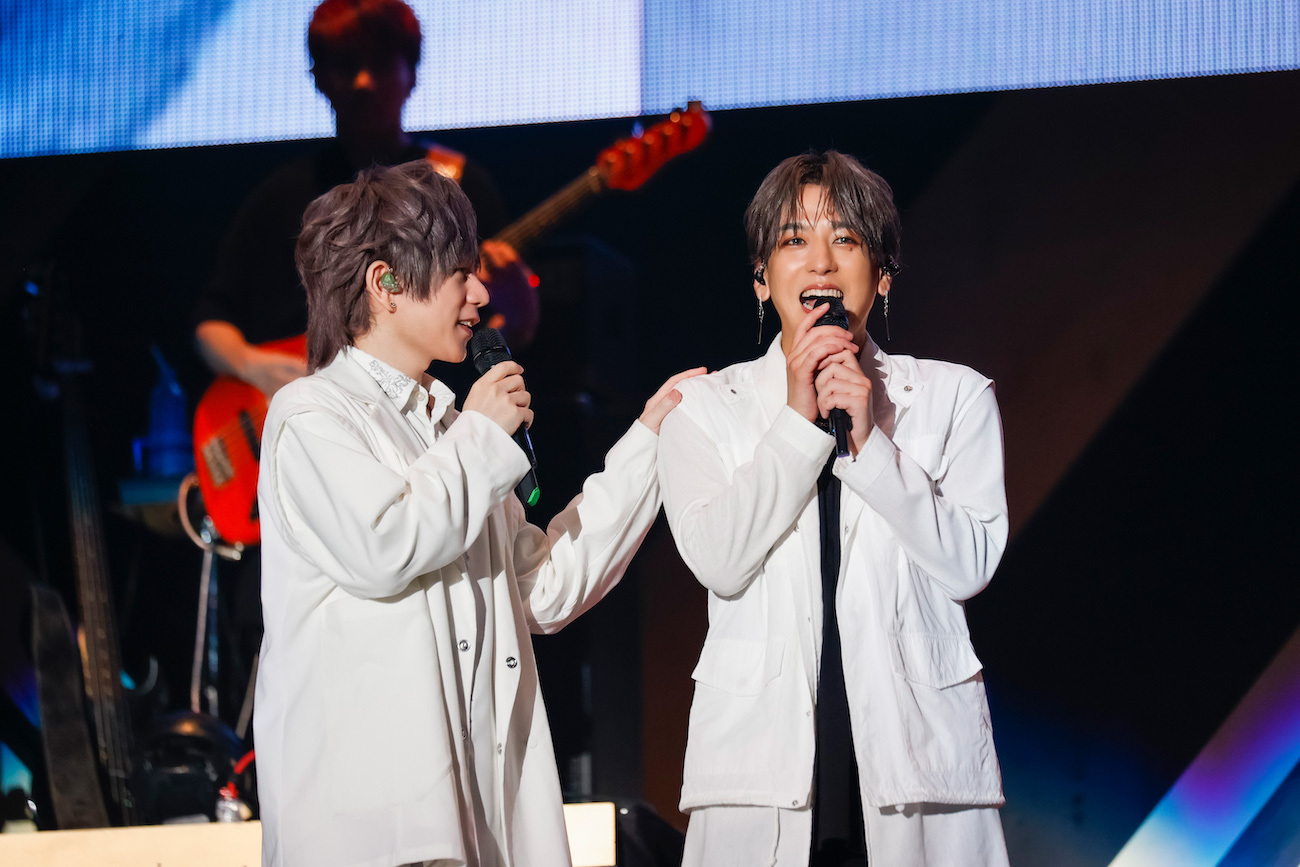 エモーショナルなロックナンバー「不可逆性シンクロニシティ」で、ロングトーンでも圧倒したうらたぬき。甘く惑わすような「I think」を巧みで繊細なファルセットで彩ったセンラ。オトナなシャッフルナンバー「cigar≠kiss」を歌でもダンスでも色気たっぷりに魅せた志麻。マイクスタンドを握りしめながら「共鳴Tune!」をパワフルに歌い、ダイナミズム増し増しに披露したとなりの坂田。。「We can fly away, NEW SKY!」での向き合って歌う姿も、crewのシンガロングパートも胸熱すぎたうらたぬきととなりの坂田。。センラが作詞・作曲を手がけた「bloom」で、歌にダンスにあうんの呼吸を感じさせた志麻とセンラ。『Plusss』に収録のソロ曲もユニット曲も、ライブ映えしすぎる。