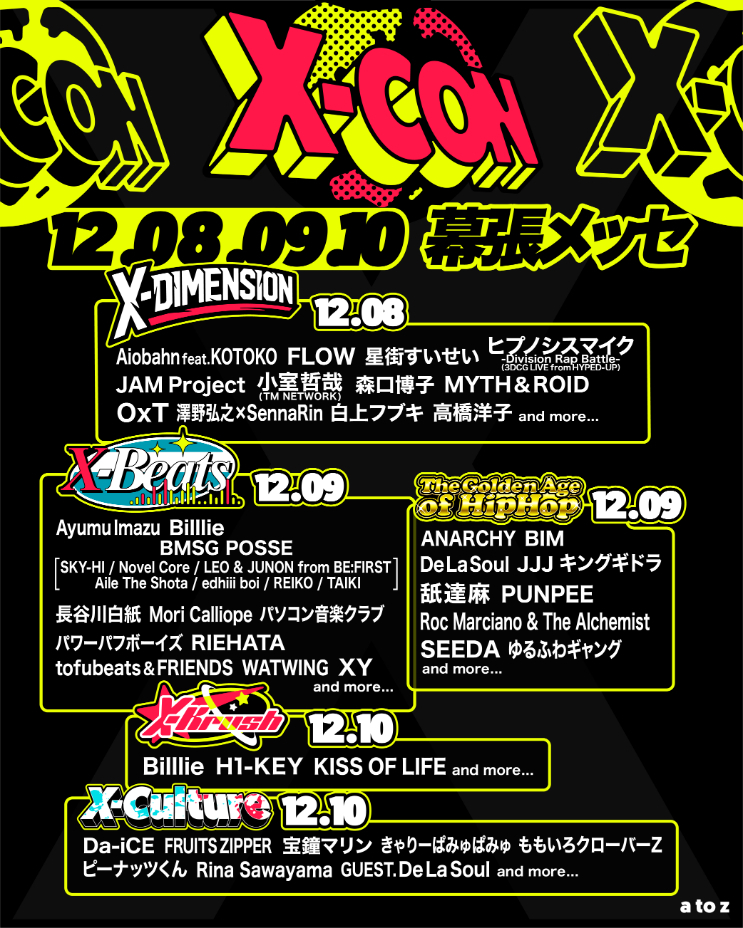 『X-CON』は、ジャンルや国境を超えて、アニメ、ゲーム、ロック、ヒップホップ、アイドル、K-POP、VTuberらが一堂に集結するクロスカルチャー音楽フェス。初開催となる今回は、「X-Dimension」、「X-Beats」、「The Golden Age of Hip Hop」、「X-Krush」、「X-Culture」と題した5つのショーが繰り広げられる。