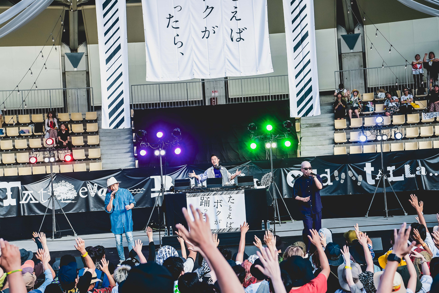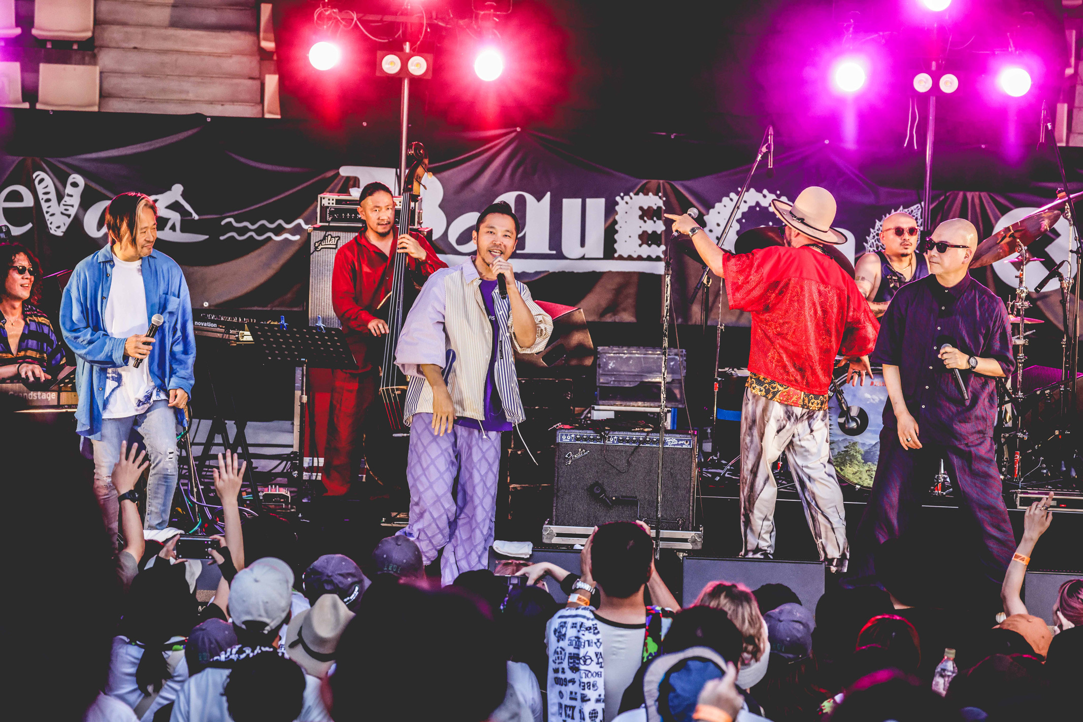 そこにRHYMESTERの3人が呼び込まれ、SOIL&"PIMP"SESSIONSとのセッションへ移行。「始まると終わっちゃう」と名残惜しそうにしつつも、「Funky Pongi x 爆発的」「MIRACLES x The Choice Is Yours」とそれぞれの楽曲のマッシュアップから、RHYMESTERの「フラッシュバック、夏。」、そして10年前の2013年にリリースされたRHYMESTERとのコラボ曲「ジャズィ・カンヴァセイション」とここでしか見れない贅沢なステージがめくるめくように続く。「どいつもこいつも300%で騒げー!」と煽られ、ラストは昨年リリースされた「初恋の悪魔 -Dance with The Devil-」。HIP HOPとジャズの融合というピースフルな多幸感で会場を満たし、今年の『たとえばボクが踊ったら、#005』は大団円を迎えた。