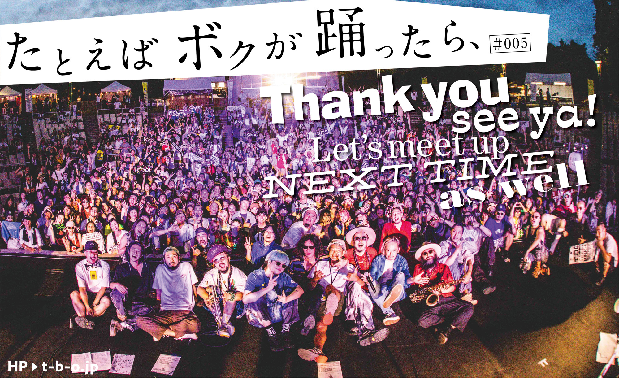 いくつもの困難を乗り越え、数々のドラマと伝説が生まれてきた『たとえばボクが踊ったら、』。数年ぶりに声出しやディスタンスなど気にすることなく、開放的な野外で最高の音を存分に味わうことができたこともあり、イベントの原点に立ち返ることができたような気がする。その上で今年は、全てのステージがこれまでの伝説を更新しようとする強い想いに溢れていた。それは、チバの復帰を願うみなの思いがそうさせていたことは間違いなくあると思う。そしてなにより、あたりまえだったことが、あたりまえじゃないと知ったからこその開放感と喜びに満ちていて格別だった。来年はもっとすごい日になるに違いない。そして次はどんなドラマと伝説が生まれるのか、今から楽しみでならない。