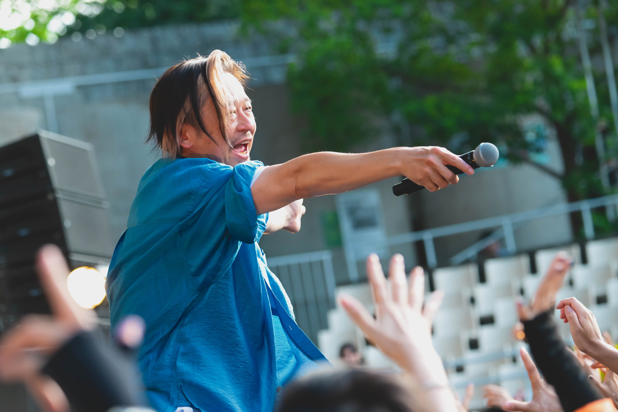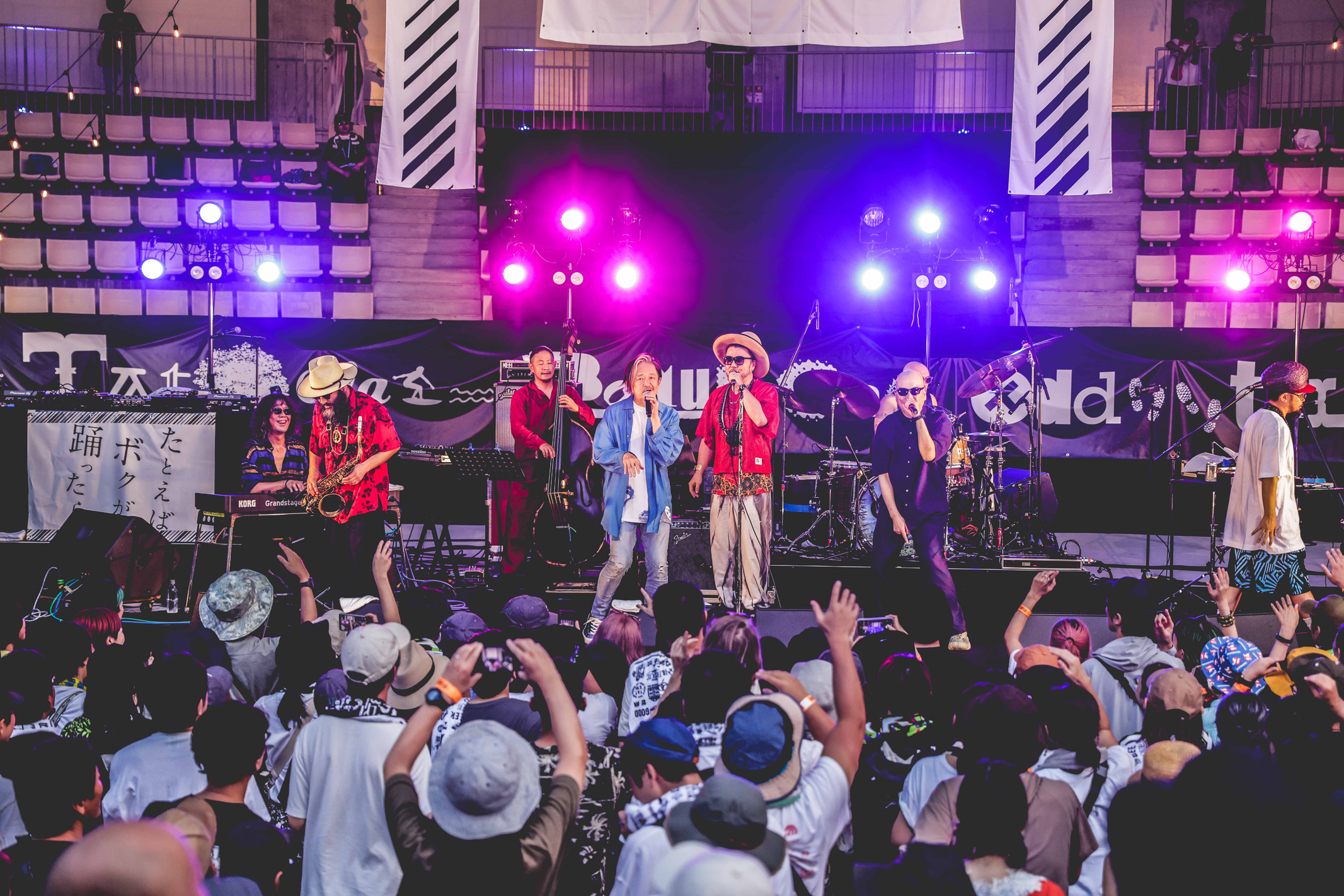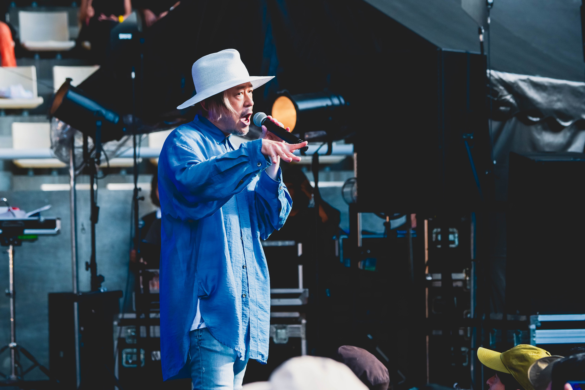 MCでは「いつもいつも気持ちいい音が鳴っていて、毎年近い仲間たちが集まって一緒に音を出せる機会を作っていただけていることを嬉しく思います。どうか続けてくれてるスタッフのみなさんに大きな拍手を」とイベントへの想いを届け、Kroiの内田怜央を呼び込む。社長が顧問を務める『ONE PARK FESTIVAL』にKroiが出演した際のことを振り返りながら、少し緊張気味な怜央としばしトーク。ゆるりとした流れから、「闘病中のチバさんに捧げます」(社長)と「LOVE ROCKETS」のイントロが流れた瞬間のざわめきの大きさたるや。「チバさんに届けー!」と歌われ、ぶつけられたロックンロールにみんながみんな狂喜乱舞の盛り上がりに。勢いはそのままに、ラストの「SUMMER GODDESS」まで熱気と幸福感は高まりっぱなしとなる。
