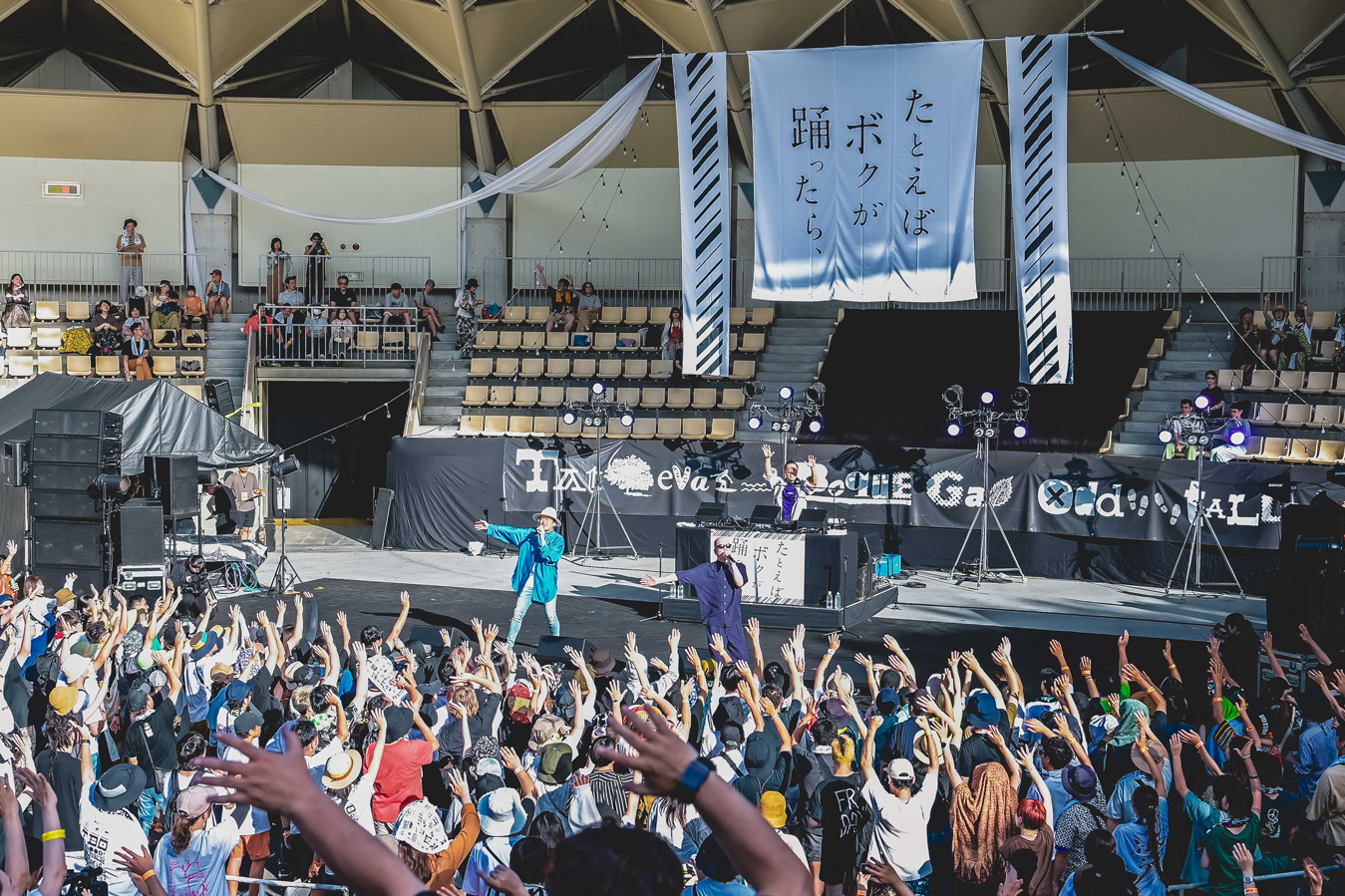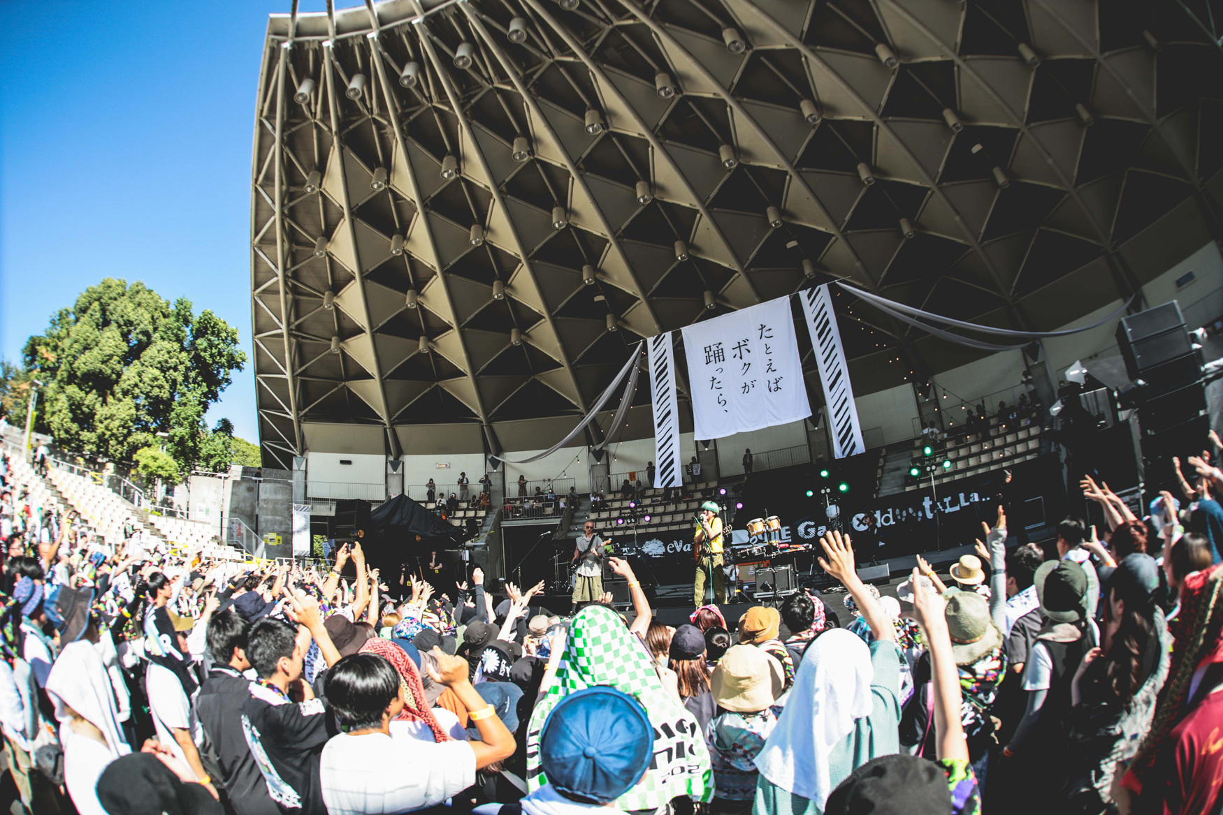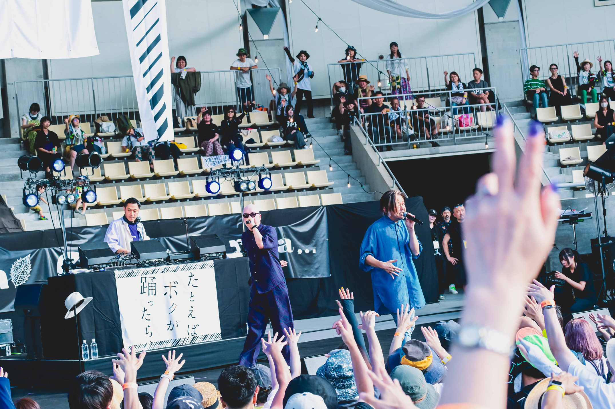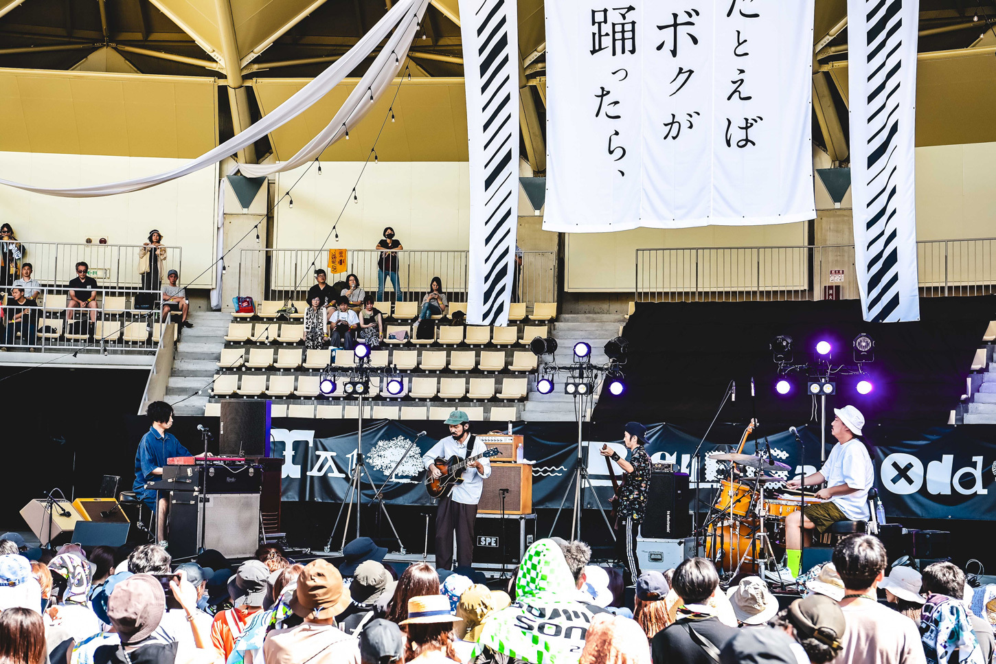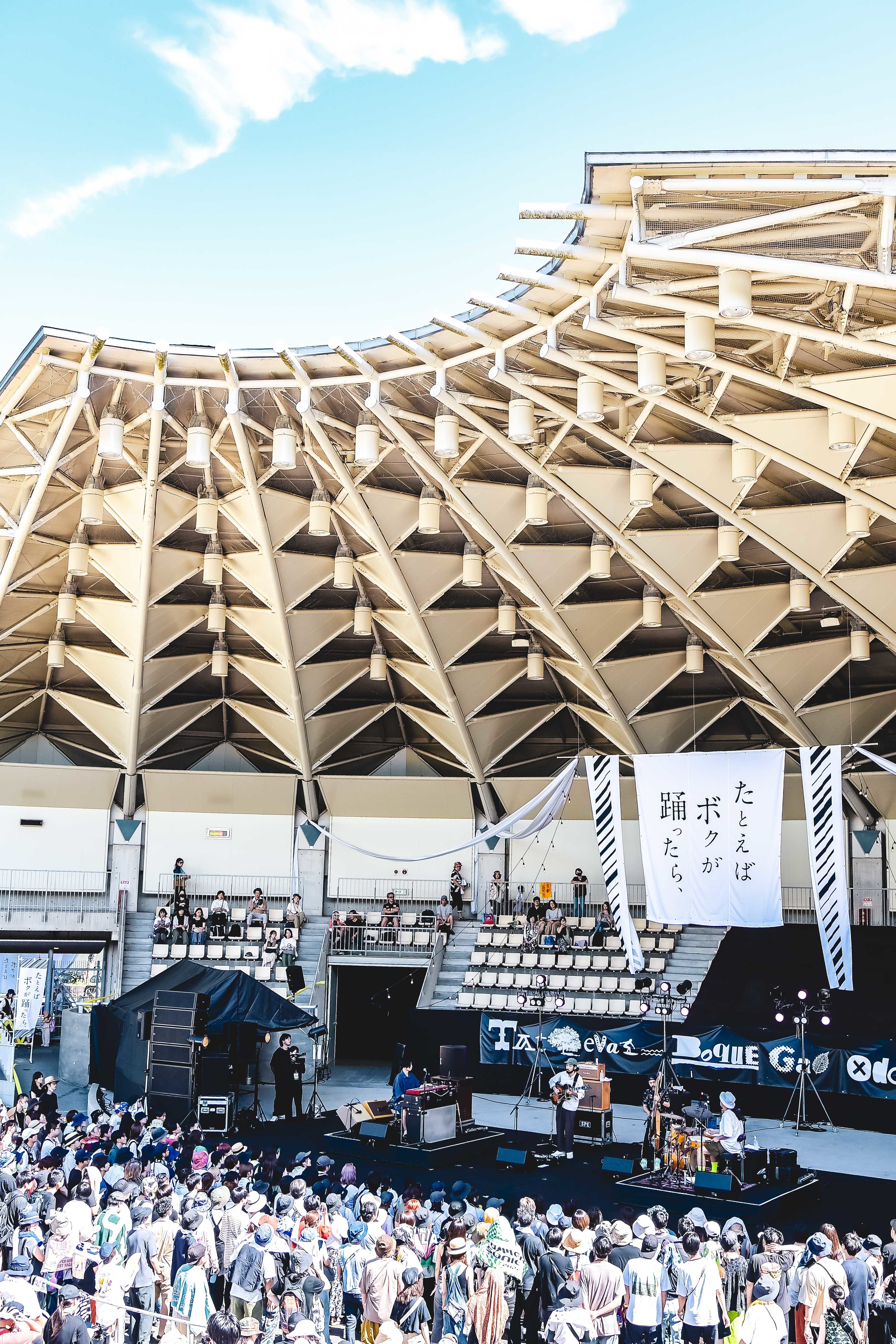 会場は新大阪から約15分、東京からでも日帰り可能な好立地で、自然豊かで開放感あふれる大阪・服部緑地野外音楽堂。今年は1ステージとなるが、こだわりのフードが並び、いつもの『ボク踊』らしいアットホームな雰囲気で賑わう。晴天で当日を迎えることができただけでも、ひとしおの喜びを感じているオーディエンスは『ボク踊』の常連のみなさんかもしれない。(理由については、昨年のレポートを参照:https://spice.eplus.jp/articles/309041)
