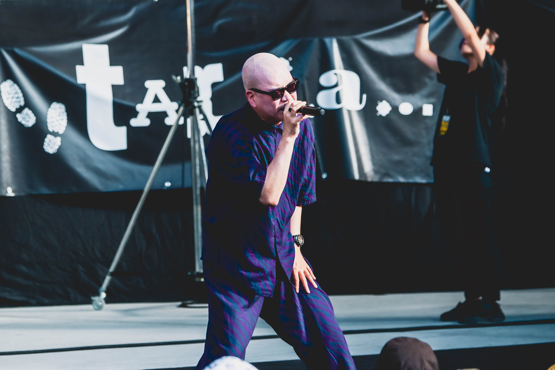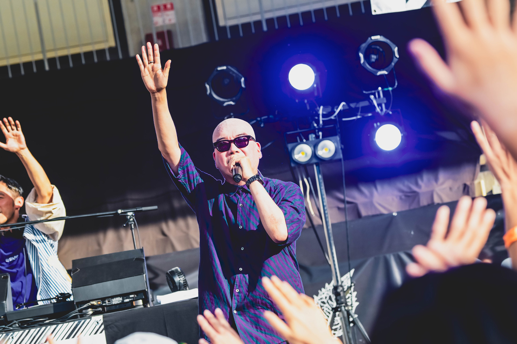 そして、拍手に迎えられ登場した「KING OF STAGE」ことRHYMESTER。早々に「警告灯を鳴らしてやろうじゃないか!」と意気込み、今年がHIP HOP誕生50周年の節目である歴史を振り返る、宇多丸のキレキレの前口上から「Future is Born」で口火を切る。1曲目からオーディエンスの心をガッチリ掴み、<踊ろうよ 突っ立ってないで><騒げ!>の合図でフロアはハンズアップ。声を出し、踊って楽しむハイテンションに。続けざまに「Back & Forth」でもMummy-Dとの掛け合いが決まり、オーディエンスの視線を釘付けに。