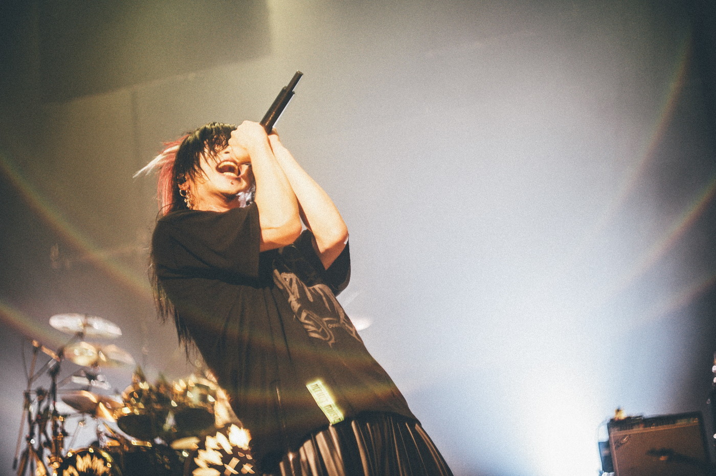 そして、観衆によるシンガロングで場内がいっぱいに充たされた「「遺書。」」に、千秋がわざわざ「バンドが綺麗事を歌わねぇで誰が歌うんだよ!」と訴えてから演奏されることになった「僕等の夜について」。今宵「ミザリィレインボウ」までの間に演奏された曲たちも、どれもこれもわたしたちの心を揺さぶり、惹きつけるものばかり。