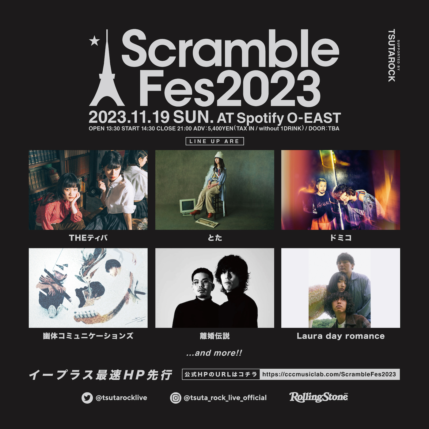 2023年11月19日(日)にSpotify O-EASTにて『Scramble Fes 2023 supported by TSUTAROCK』の開催が決定。併せて、第一弾出演アーティストが発表となった。