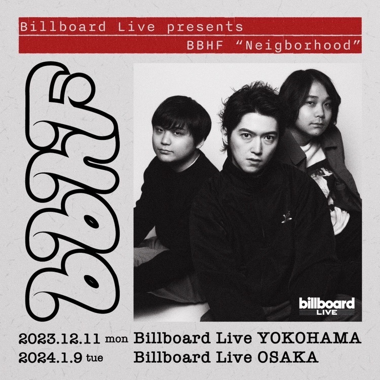2023年2月の恵比寿LIQUIDROOM公演以来となるワンマンライブで、『Billboard Live presents BBHF “Neigborhood”』と題して、12月11日(月)ビルボードライブ横浜、2024年1月9日(火)ビルボードライブ大阪で各2ステージの開催となる。