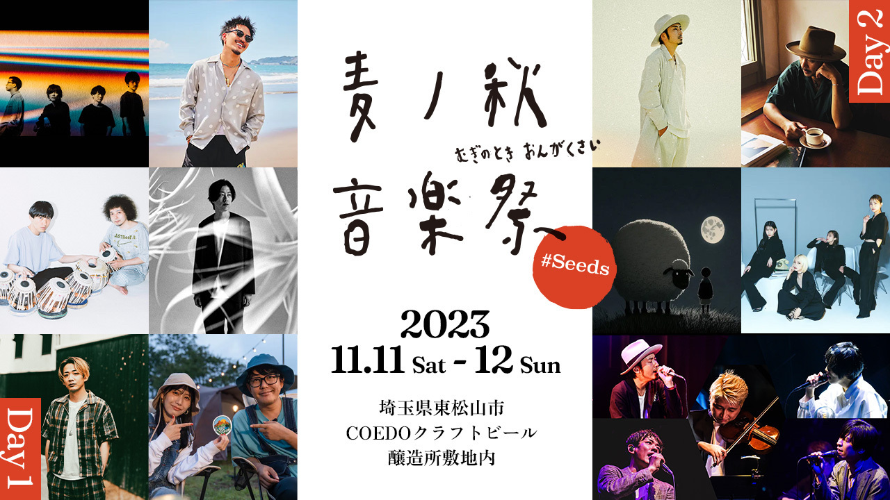 埼玉県東松山市にあるCOEDOクラフトビール醸造所で11月11日(土)・12日(日)に開催されるキャンプ型音楽フェス『麦ノ秋音楽祭(むぎのときおんがくさい)#Seeds』。キャンプチケットが早々に完売し、キャンパーからも注目を集めている同イベントへの出演アーティストが追加発表された。