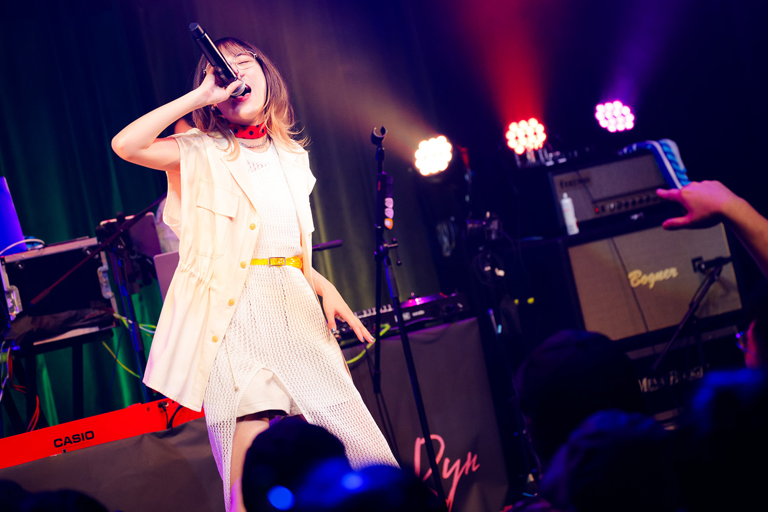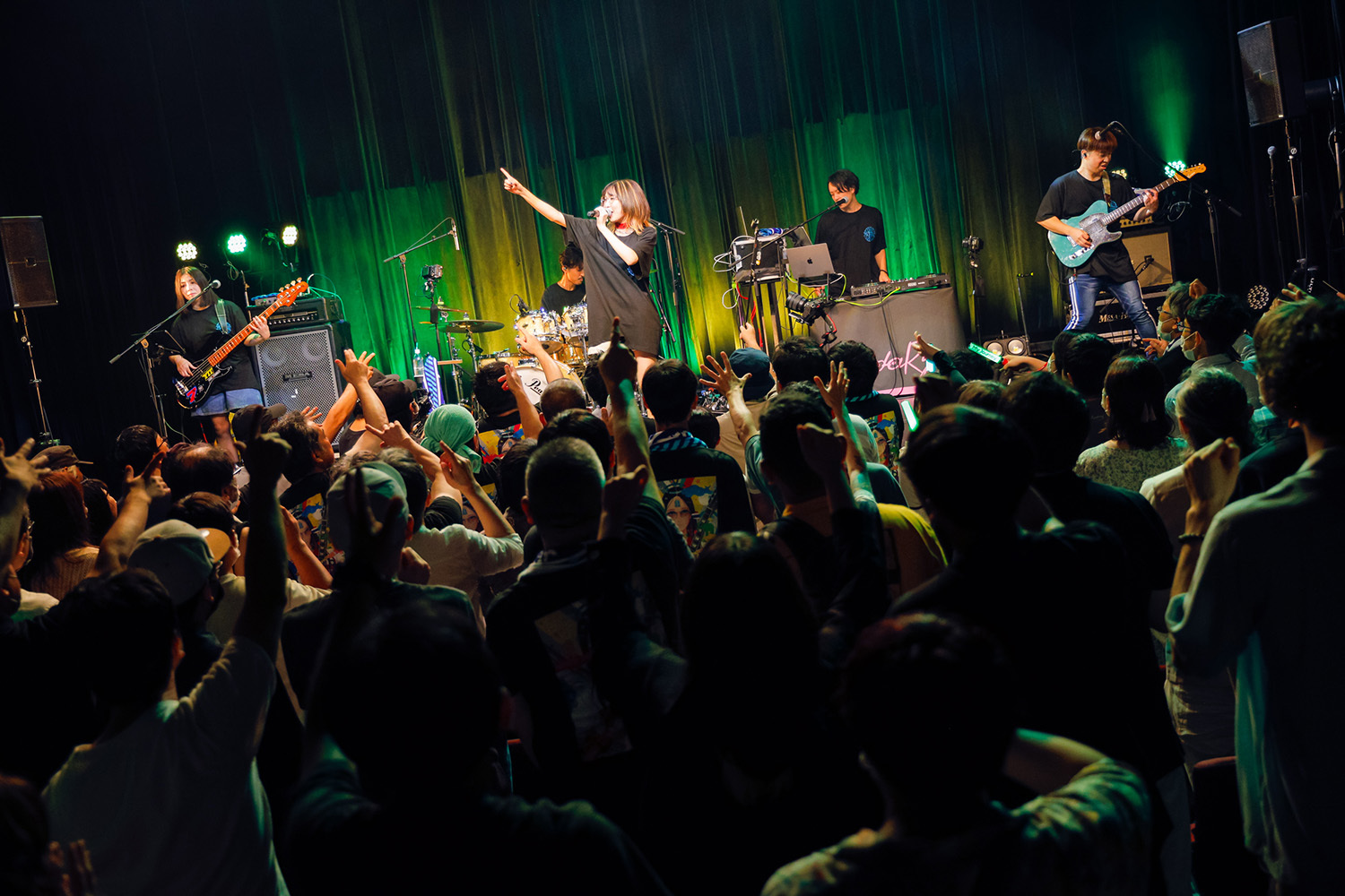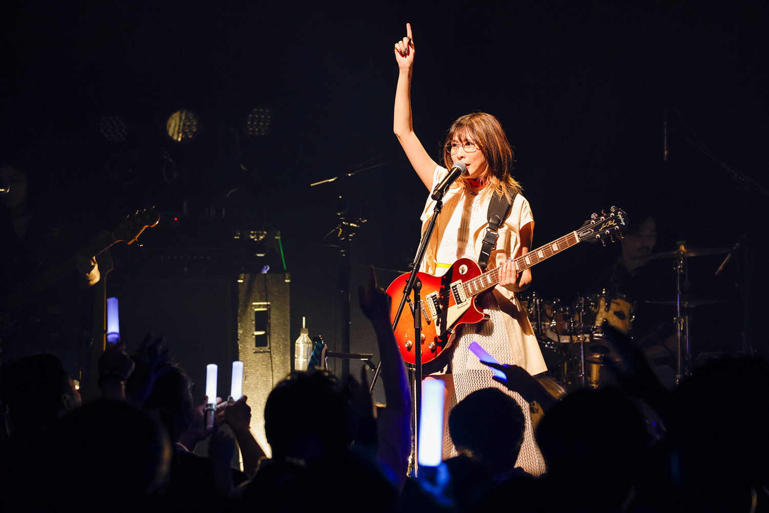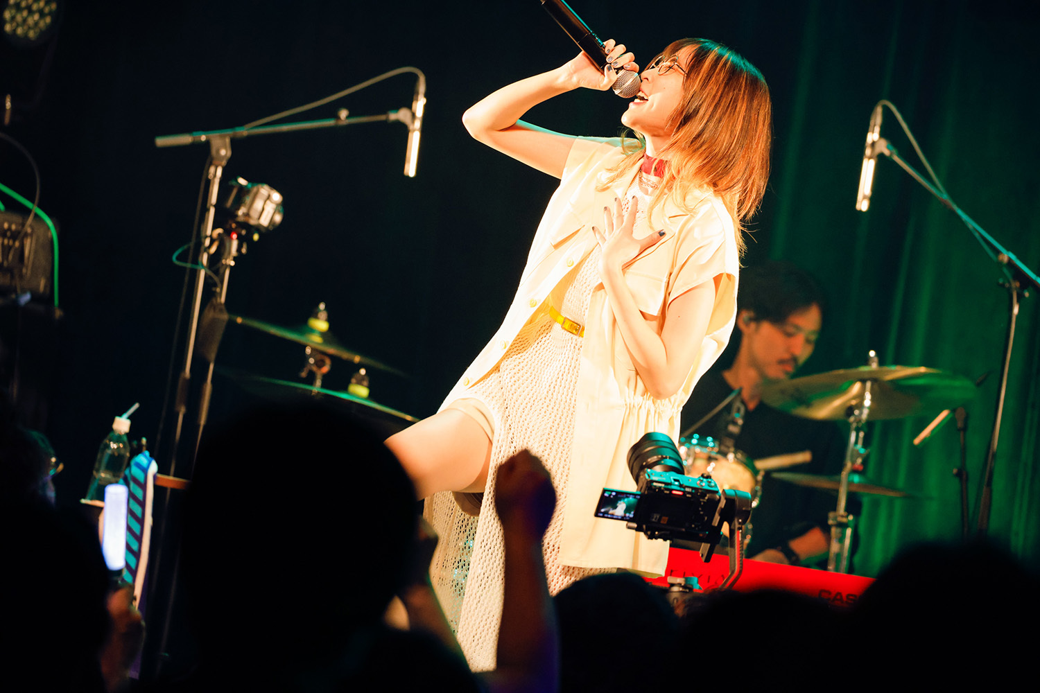 自身の楽曲の中でも最もソリッドな「SURVIVE」では再度ギターを持っての歌唱。バンドの音も粒が立っていて強烈に突き刺さってくる。ドラム、シーケンス、ギター、ベースのシンプルな編成だが、各パートそれぞれがかなりの手練だ。