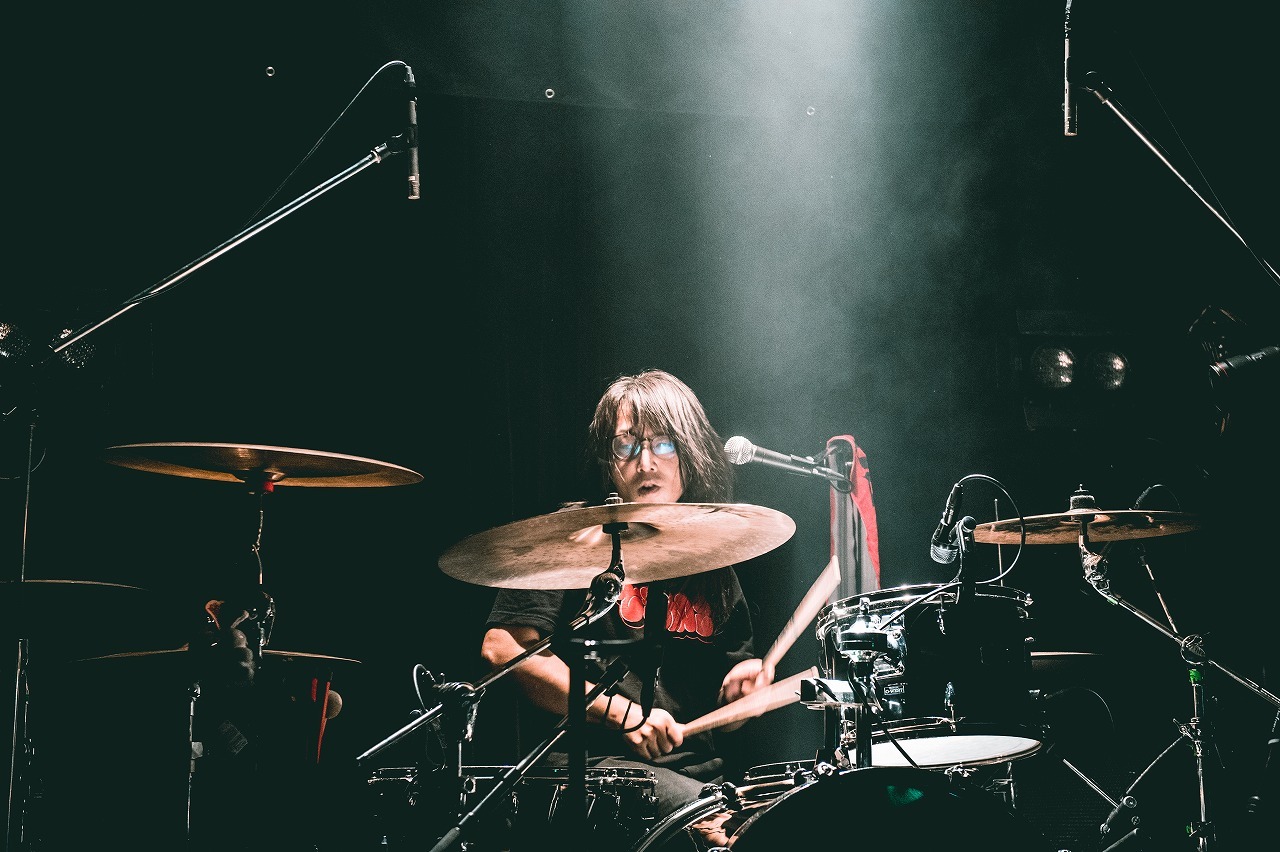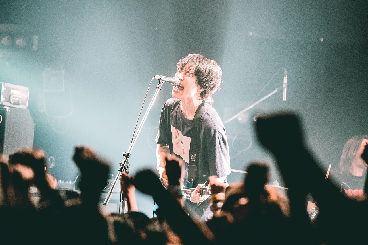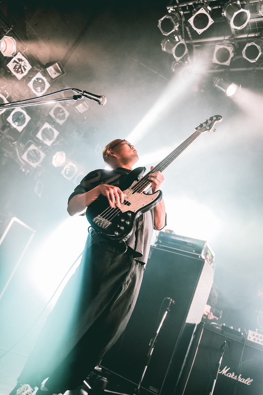 毎回唸らされるのは、一人ひとりの技量の高さだ。特にギターの矢矧暁(やはぎあきら)が奏でるメロディアスなリフや、空を切り裂くようなアグレッシブなソロはライブの大きな見どころの一つでもある。また、曲の始まりはmasaton.のドラムが担うことが多いのだが、彼がパワフルかつクールに叩き出すビートは田村亮のうねるファットなベースと相まって、スリマのサウンドをガッチリ下支えしている。2022年5月に田村亮が正式加入してまだ1年ちょっとだが、バンドは今、間違いなく最良の状態にある。また、この日は2曲の新曲も披露したのだが、いずれもスリマらしさを保ちつつ、同時に彼らが新しい領域に入ったことを感じさせる力強い楽曲だった。