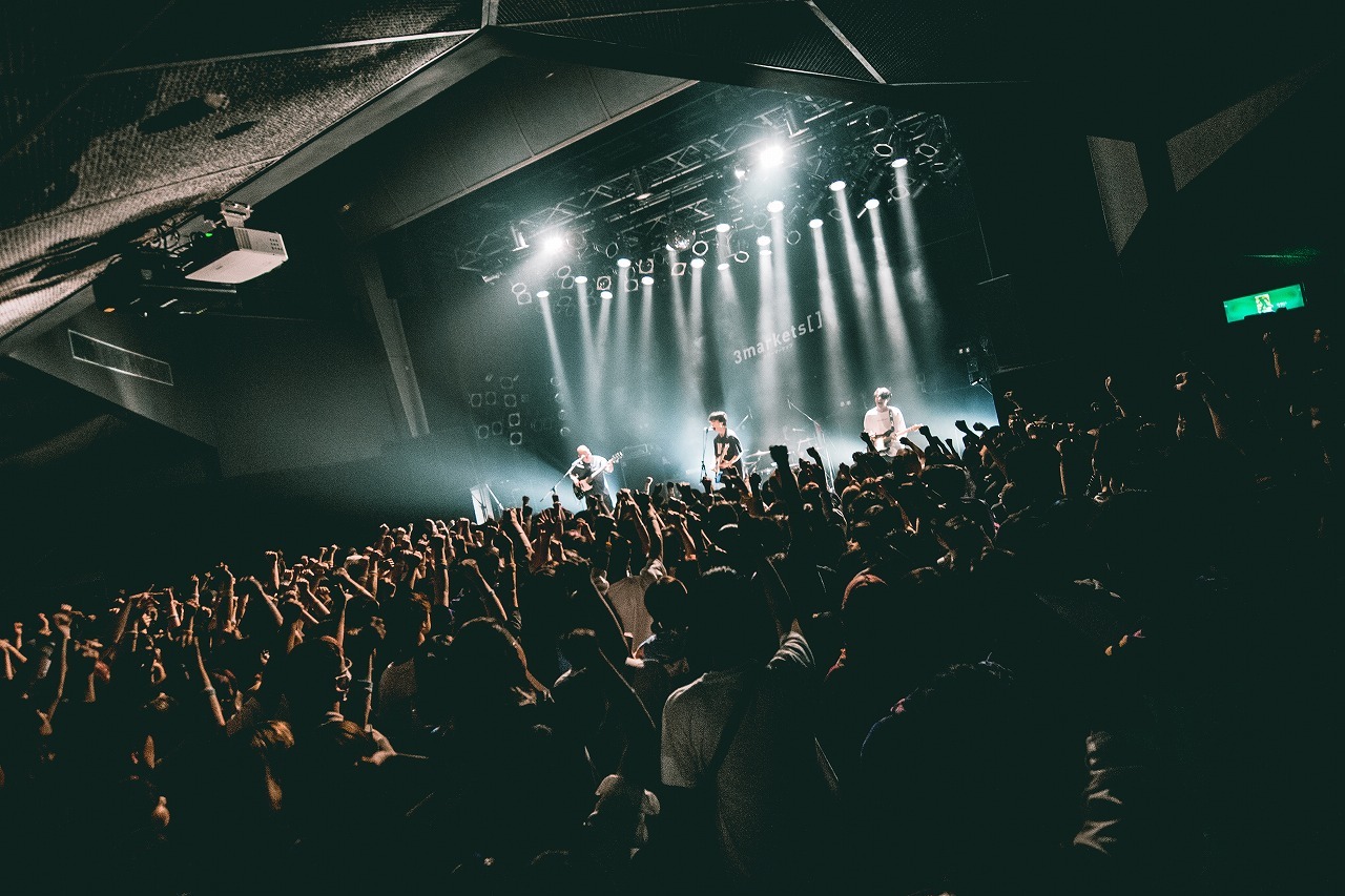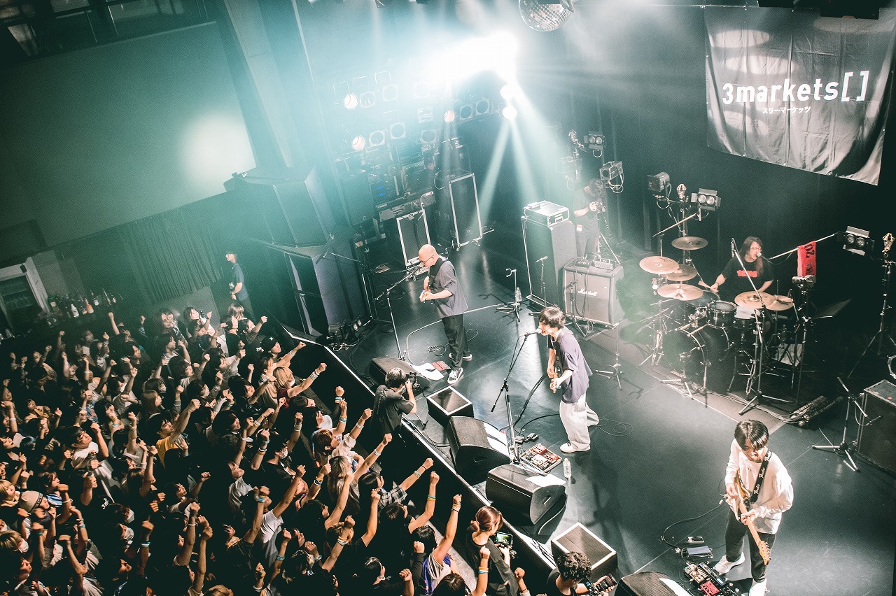 3markets[ ] ワンマンツアー『トビウオ祭 夏』の追加公演である。ここのところファンから「チケットが取れない」という切実な声が上がっているせいか、ツアーファイナルの会場(新代田FEVER)よりも大きなところでの追加公演となったわけだが、案の定、本公演もすぐにソールドアウト。台風13号の客足への影響が危ぶまれていたものの、スタンディングエリアはぎゅうぎゅう詰めで、2階席から見渡した感じでは男女比は3:7ぐらい。若い女性が圧倒的に多い印象だ。TikTokで「社会のゴミカザマタカフミ」がバズった影響も大きいのかもしれない。