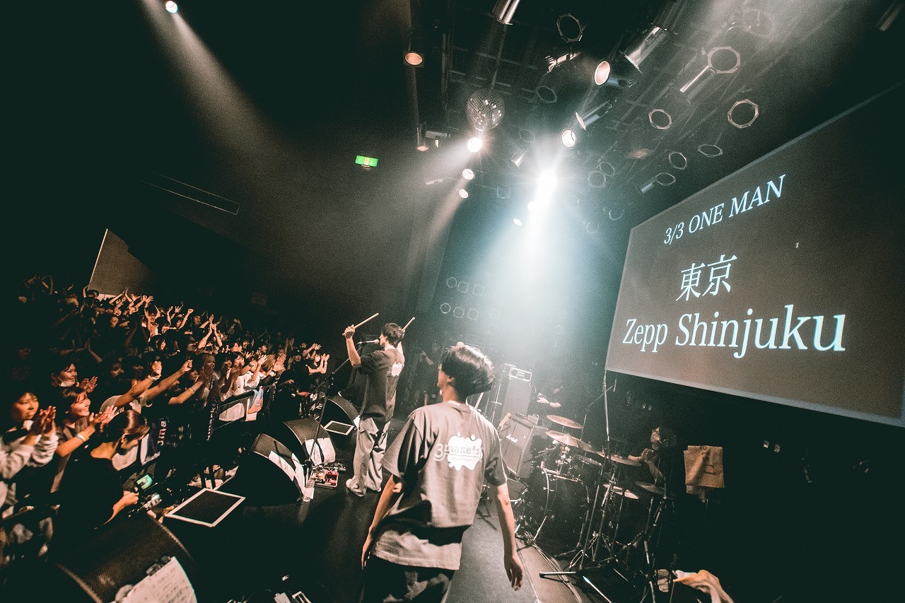 1回目のアンコール「マイニッチ」が終わると、ステージ中央にスクリーンが下りてきて映像が流れた。そこには驚きの告知が二つ。一つは12月25日に六本木EXシアターで行なわれるイベント『ラブ・カザマタカフミ』。bokula.、なきごと、クジラ夜の街という交流のある3組が脇を固める自主イベントである。もう一つは2024年3月3日、Zepp Shinjuku (TOKYO)での単独ライブ。