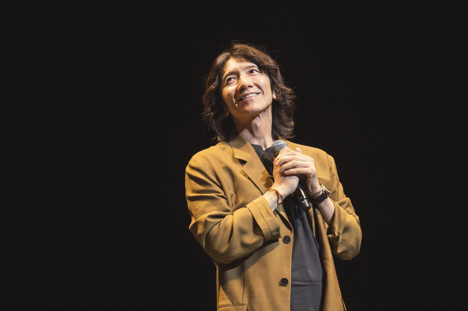 そして、2日目の上映終了直後には吉井和哉が登場。「どうも、お久しぶりです。吉井です。ステージに立つのも、ワイヤレスマイクを持つのも久しぶりです」と笑顔で挨拶し、ファンを大喜びさせた。それもそのはず、吉井和哉が公式の場に現れたのは、約1年8ヵ月ぶりのことだった。「ソロデビュー20周年、こんなにも素敵な場所を設けていただき、みなさんに貴重な休日に集まっていただき、ほんとうにどうもありがとうございます」と、スタッフに対しても感謝を述べると、上映映像の感想や出演ミュージシャンとのエピソード、展示内容にまつわる裏話を披露。最後には改めてファンへの感謝を笑顔で伝え、会場には大きな拍手が沸き起こった。