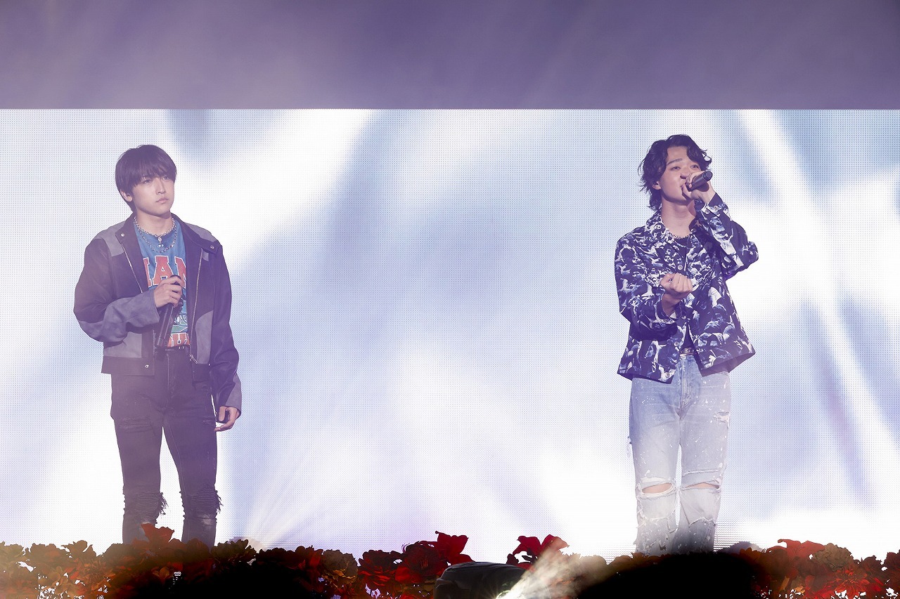 Aile The Shotaの出番の最後に繰り広げられたのは、SHUNTO(BE:FIRST)、REIKO、RUI、TAIKIも加わった「YOLO」。これも『THE FIRST』の審査内で生まれた一曲である。オーディションで出会ったこの5人は、それぞれが自身の才能や個性がもっともいい形で花開く道を選んだ。あれから3年間、自分の道をしっかりと歩み進めてきたからこそ、このステージ上で5人の異なる輝きと笑顔がキラキラと乱反射していた。