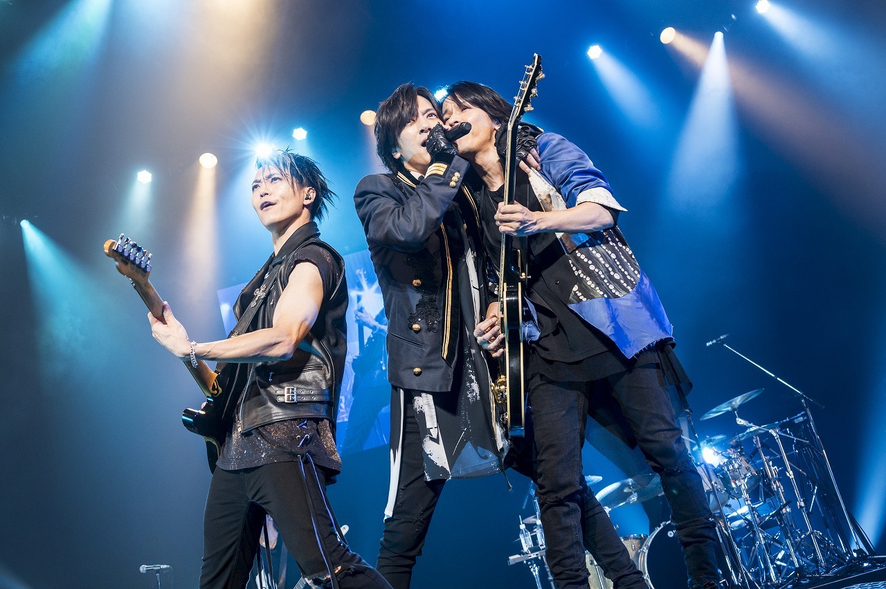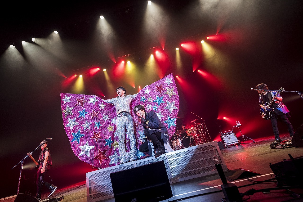 それにくわえ、このライブでは声出し解禁となった今のタイミングに合わせて作られたものであることがうかがえる新曲「RESTART OF LIBERTY」が供されたうえ、MCでの「実は僕たち、NoGoDやゴールデンボンバーの曲をリハでやったりしてるんですよ」というDAIGOのフリから、NoGoDの「ノーゴッド」とゴールデンボンバーの「毒グモ女」を一部分カバーするくだりまであり、これには各バンドのファンも大喜び(注・後者についてはフリまで完コピ!)。つくづく、BREAKERZは人心掌握術に長けている。