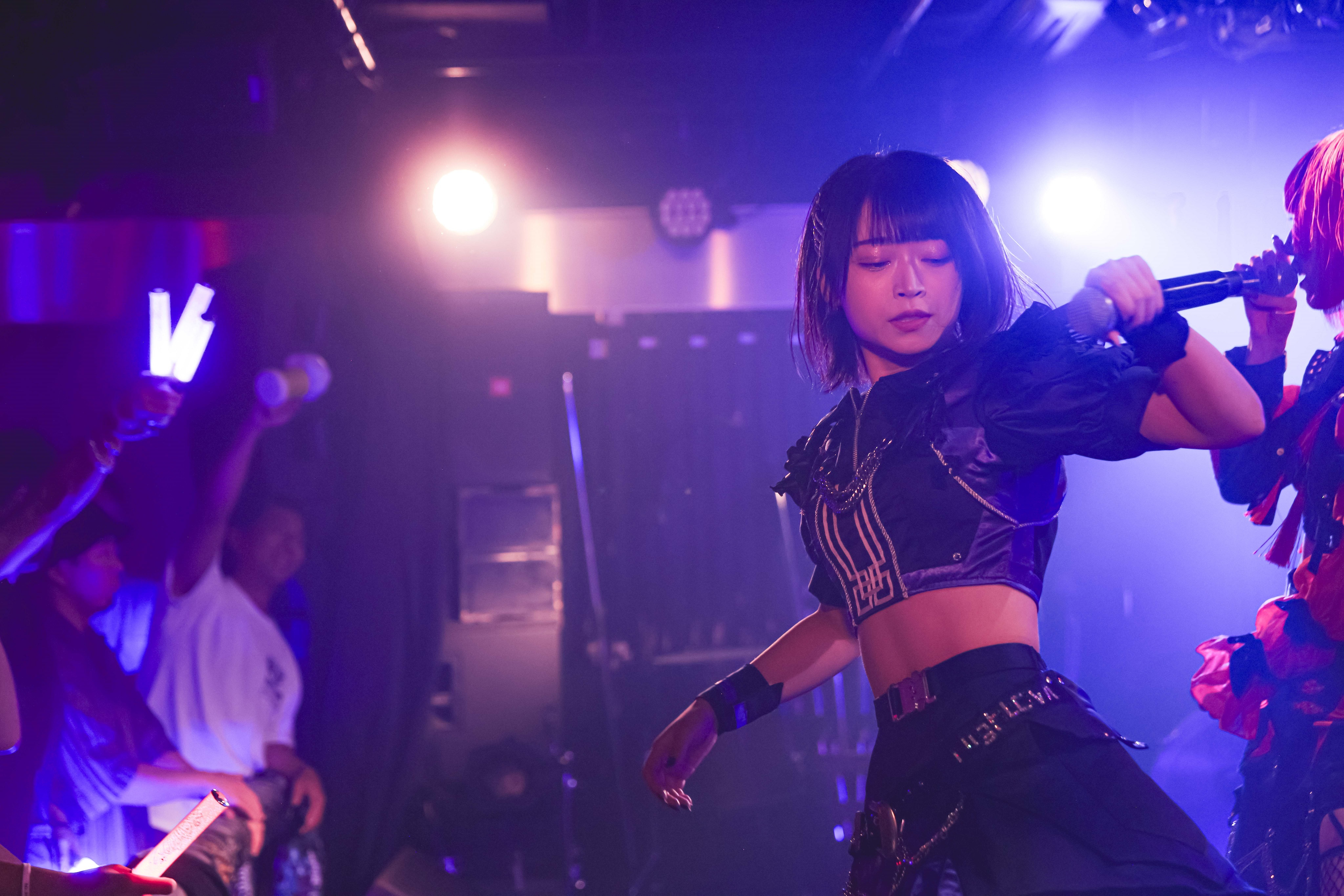 SE「Night Beats」が流れると、フロア全体から沸き起こった手拍子。メンバーカラーのペンライトの光で瞬く間に埋め尽くされた風景が美しい。待ちわびていたファンの気持ちが鮮やかに示される中、折原伊桜、百城凛音、雨夜憧、長谷川嘉那がステージに登場。「ロンリー・ナイトパレード」がスタートすると、歌声とダンス、観客の熱気が完全に1つになった。振り付けを一緒に踊り、全力でコールする人々の笑顔がとても明るい。「Living my day」「La La Lullaby」「暁闇」も届けられたことによって、早くもライブの佳境に差し掛かったかのような盛り上がりが生まれていた。