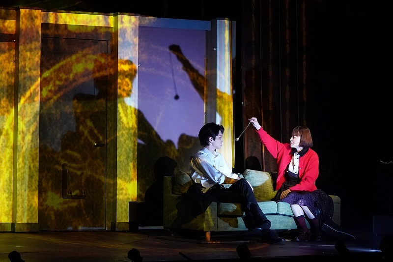 演出は上田一豪。「カンタービレ」という言葉の意味のように、全体的に「歌うように表情豊かな」演出プラン。五線譜やピアノの鍵盤をモチーフにした舞台美術のほか、音楽記号が書かれた紗幕、グランドピアノやオケを乗せてくるくる回る盆がよく生かされていたし、テンポ感もよかった。