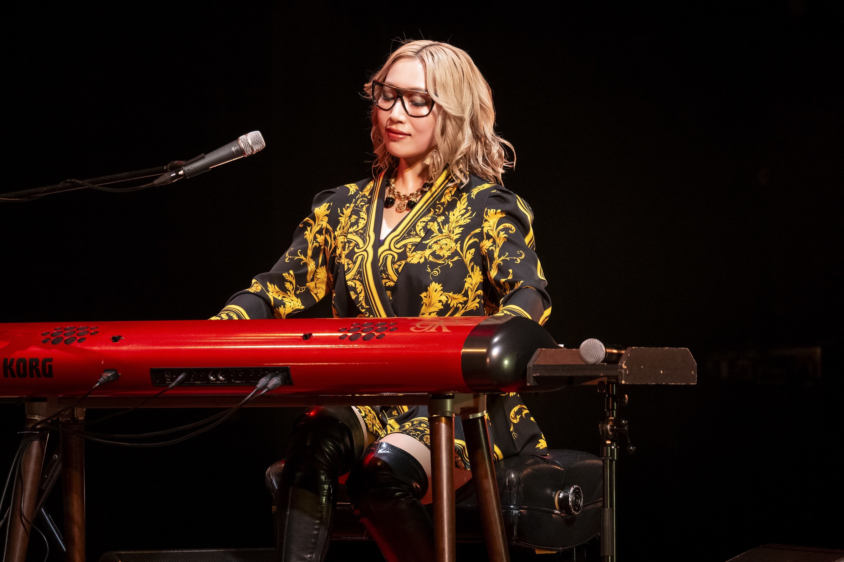 圧巻のカバー曲ブロックを経た後は、彼女の1stフルアルバム『Fabulous』の中から、お伽噺の世界をイメージして制作したという「Song of Fire〜炎の唄〜」「ILLUSION」「Rondo〜輪舞曲〜」を、3曲続けて披露。中世ヨーロッパをモチーフにした異世界を彷彿とさせる楽曲達は、赤、青、緑と各曲でそれぞれ象徴的なライティングが施されていただけでなく、ステージ背面には五条院が情熱的に鍵盤を奏でている影が大きく映し出されるようにもなっており、彼女が紡ぎあげていく幻想的な世界に深く引き摺り込まれた。そこから再び勢いを上げて、レディー・ガガの「Bad Romance」を勇壮に奏でると、Bring Me The Horizon ft.BABYMETALの「King Slayer」では、リズムトラックに合わせて勇ましく鍵盤を叩き上げるという、壮絶な演奏で第一幕は終了。音源や動画でも彼女の素晴らしい演奏は楽しめるが、大迫力で繰り広げられるパフォーマンスは、やはり生で堪能することで伝わるものがかなりある。
