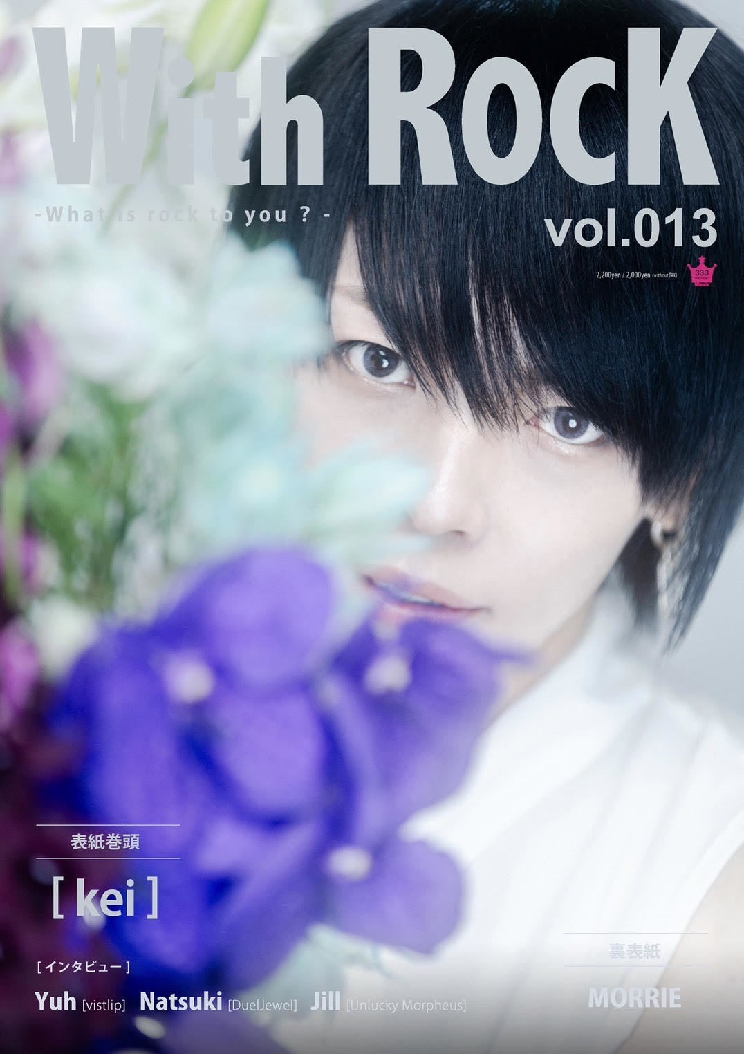『With ROCK~vol.013~』には[ kei ]のほかに、MORRIE(裏表紙)、Yuh(vistlip)、Natsuki(DuelJewel)、Jill(Unlucky Morpheus)の撮りおろし写真とインタビューも掲載。バックナンバー同様、1アーティスト、20ページ以上で展開、見応え、読み応えのある1冊になる予定だという。