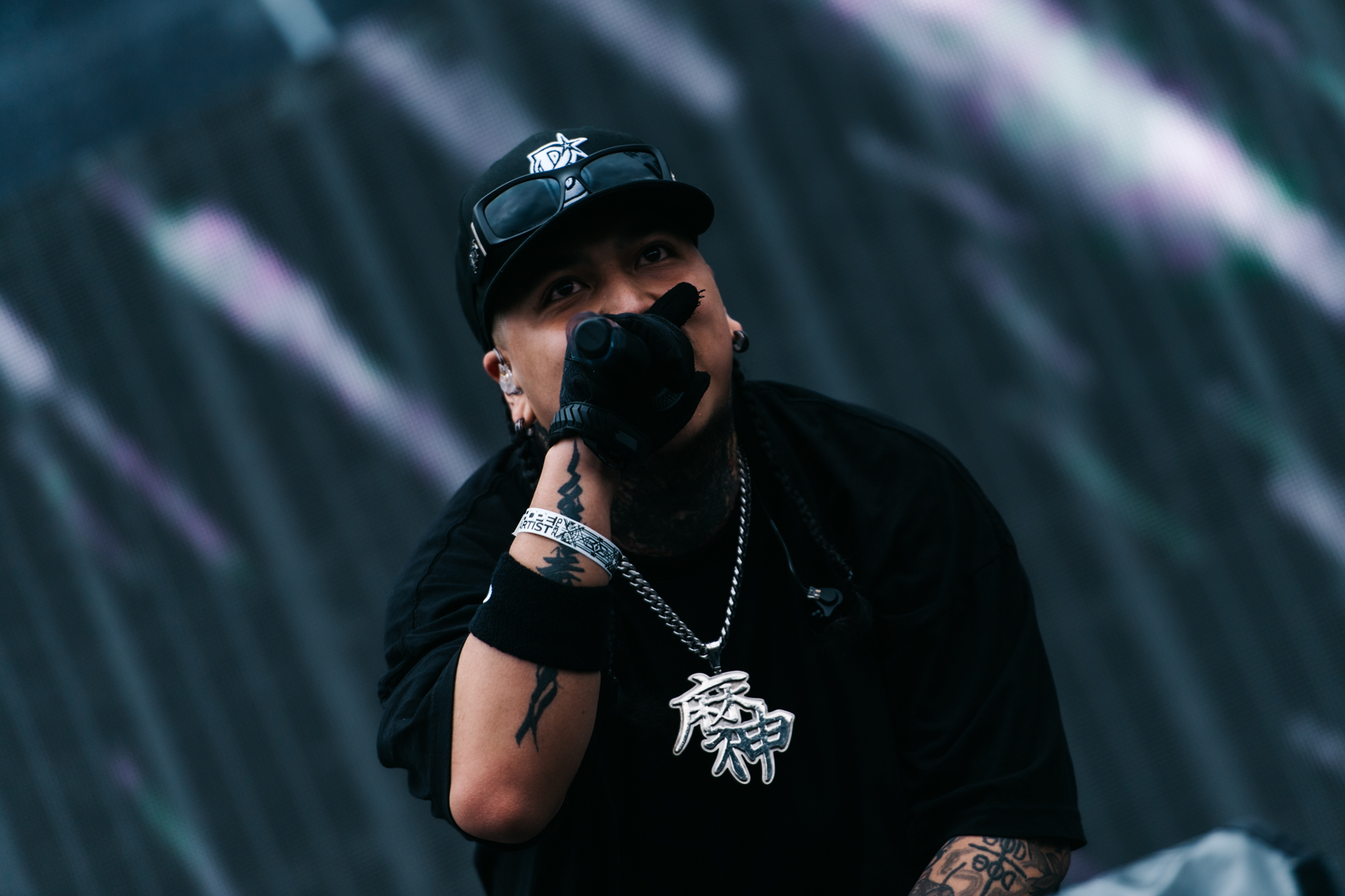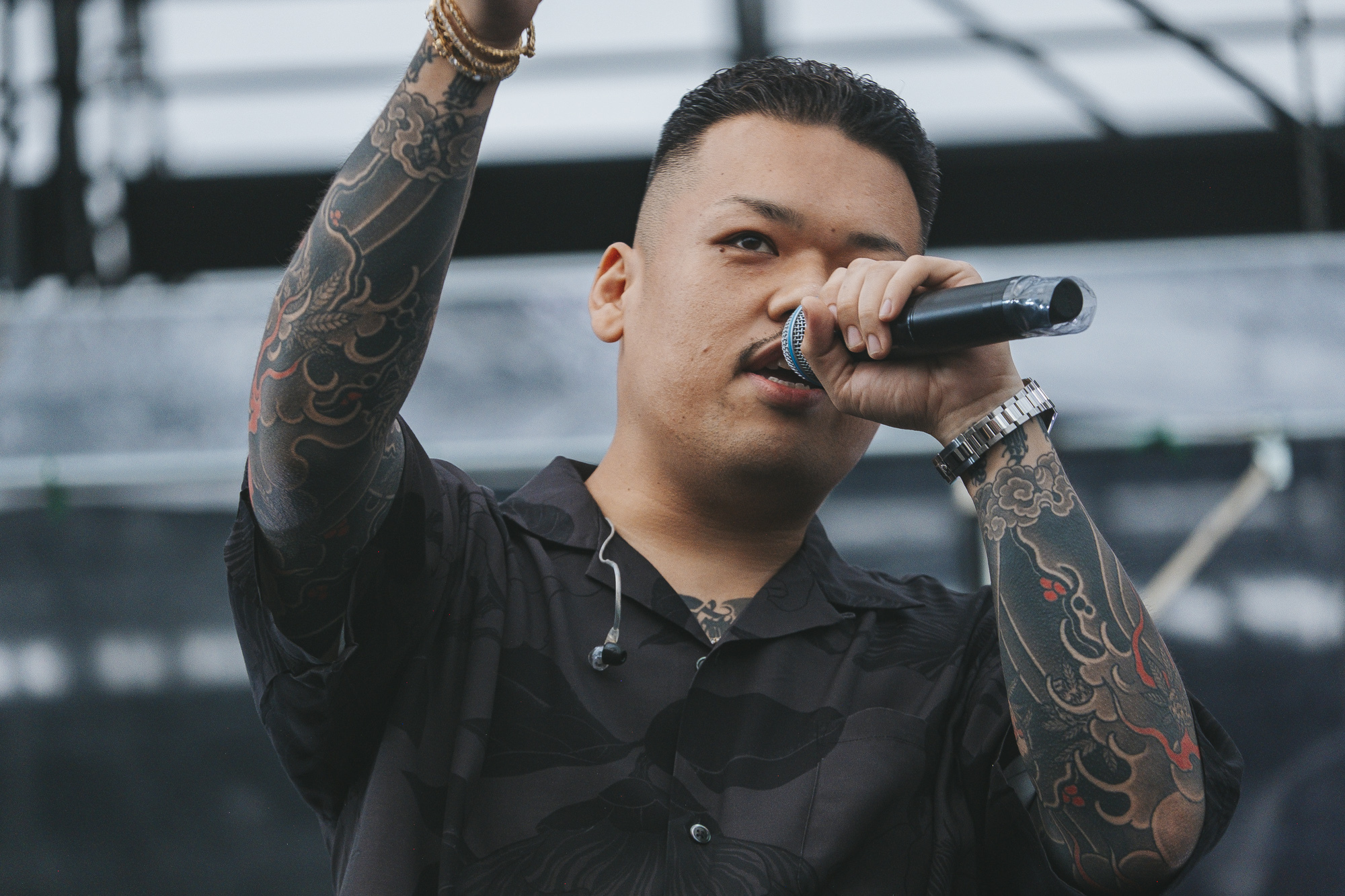 序盤でひときわ大歓声を浴びたのはralph。スマホのカメラが一斉にステージに向けられる中、威風堂々の黒づくめ、麻神チョーカーをぶらさげ、ヘヴィメタルのグロウルを思わせる極悪な低音ボイスでオーディンスを圧倒。「Get Back」はイントロだけで爆上がり、「DOSHABURI」はフックをもれなく全員が合唱する。ふてぶてしい自信と、「ありがとうございました」と丁寧に頭を下げるギャップ映え。わずか10分でも出来る奴は出来るお手本のようなパフォーマンス。