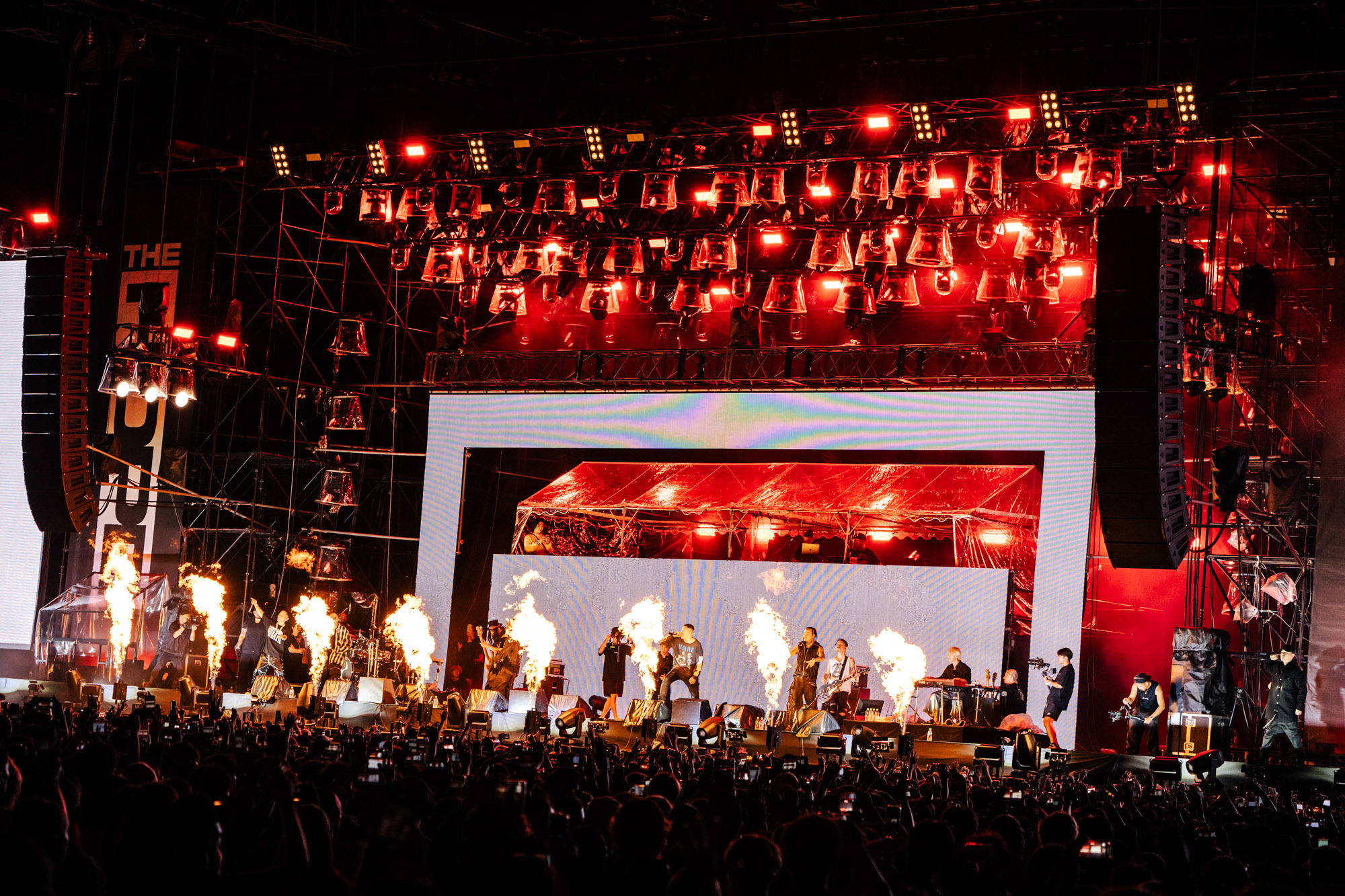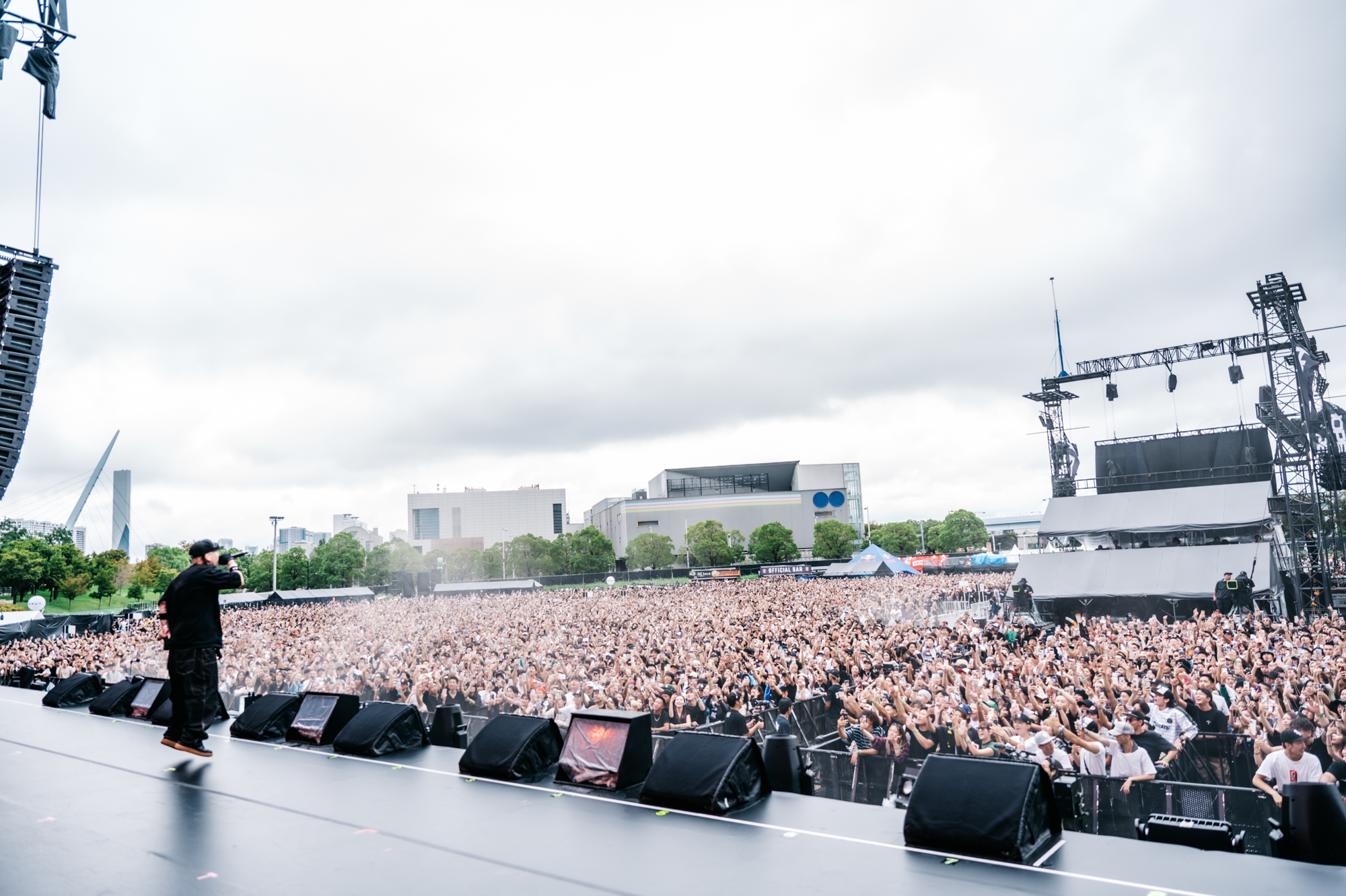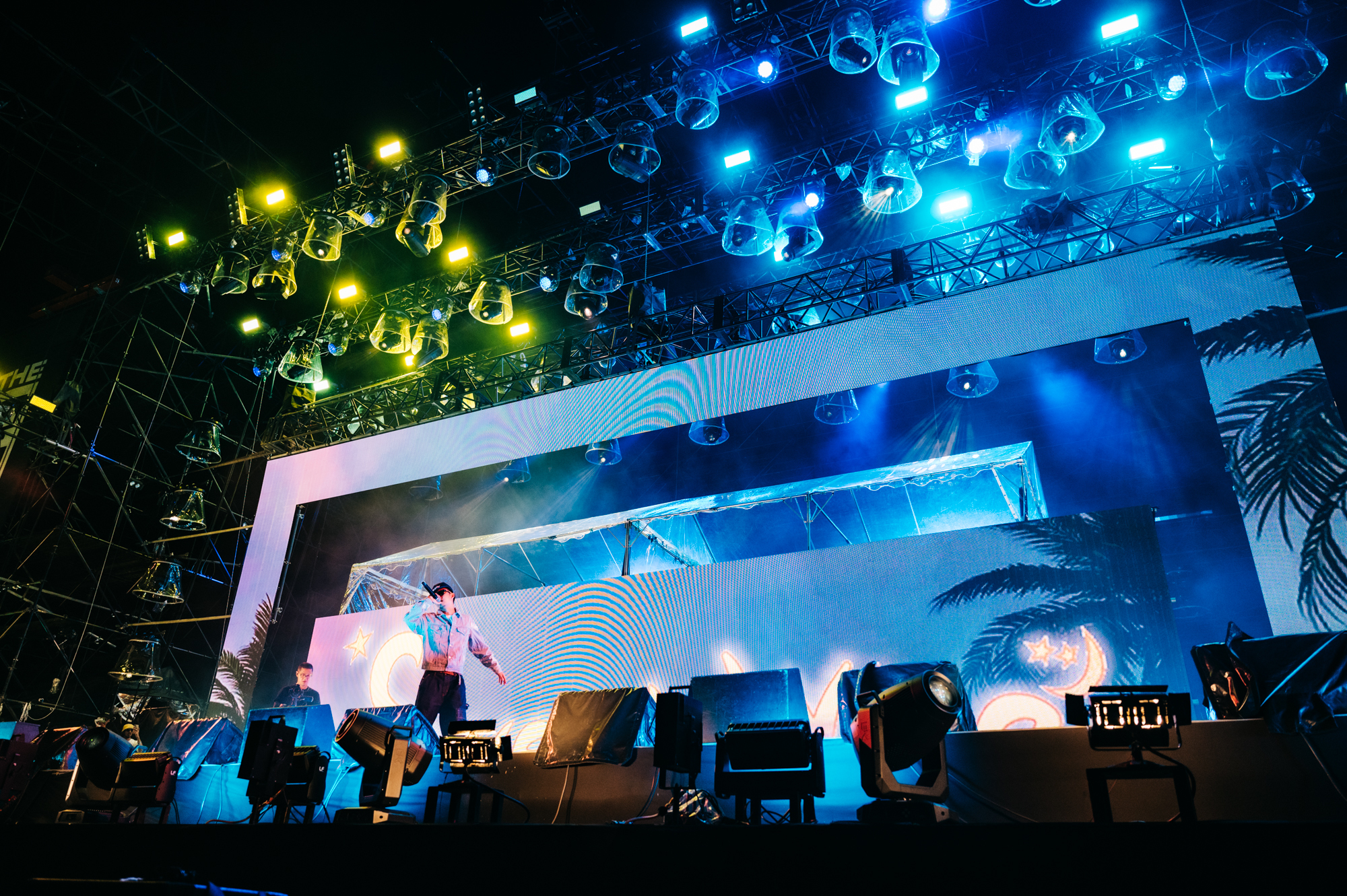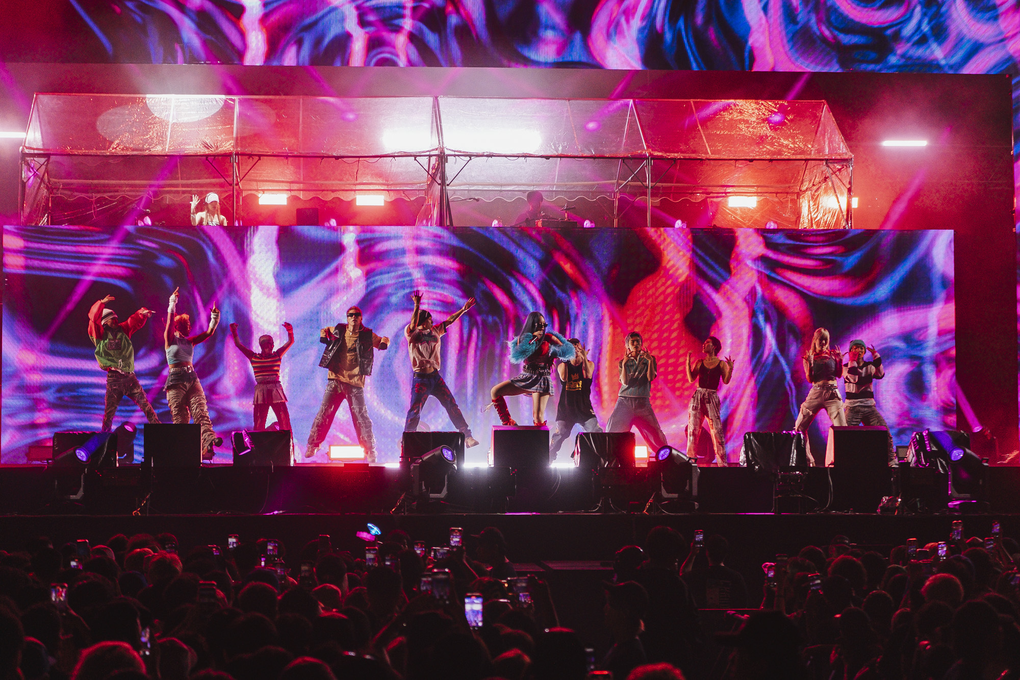 昼12時、ファーストアクトが登場した時点で、グラウンドはすでに身動きしづらいほどの人で埋まった。巨大なステージ、超大型スクリーン、鮮やかな照明の演出、無数のPAによる爆音、なにもかもスケールがでかすぎる。序盤のアクトは持ち時間5~10分しかないが、そこに全力をぶち込むからテンションが異様に高く、転換もスムーズでどんどん進む。すべてのアクトに触れていると文字数がいくらあっても足りないので、特に印象的だったパフォーマンスをここから紹介していく。