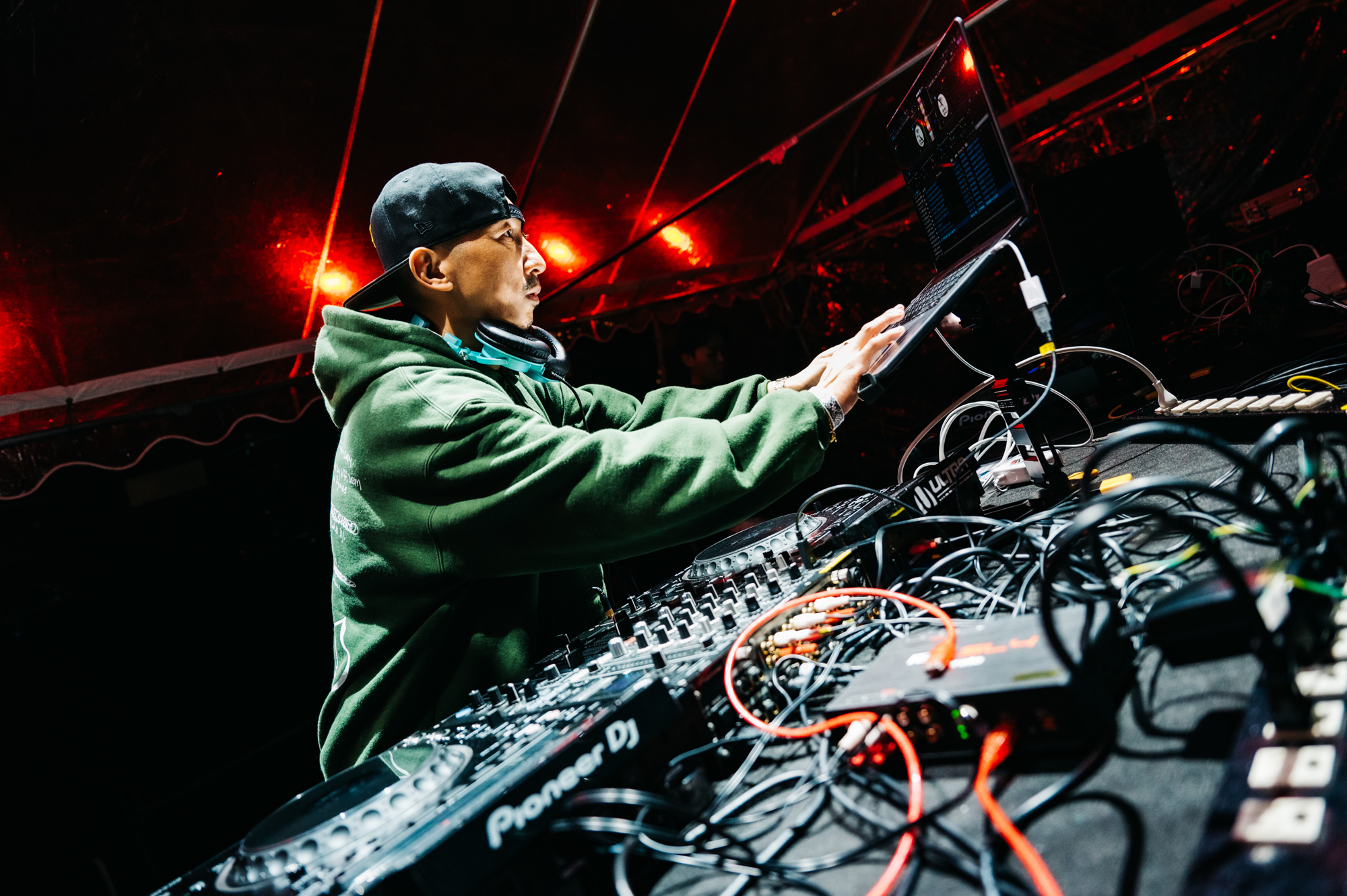 13時を回ると漢、D.Oといった実力者が登場してくるが、ANARCHYの奇天烈かつ安定した存在感はやはり格別だ。ピンクのフーディーを半分だけ被ってステージをのし歩き、C.O.S.A.を呼び込んでまだ誰も知らない新曲(かっこいい!)を本邦初披露。ビートなしで圧巻のフリースタイル、いや、自らの生きざまの独演会と言うべき長大なスピーチをぶちかましてから「Fate」へ繋げるなど、やることなすことすべてがオンリーワンヘッズたち。盛り上げるよりも語りかける、不思議な親近感と愛らしさをかきたてる得難いキャラ。今日もANARCHYはANARCHYだった。