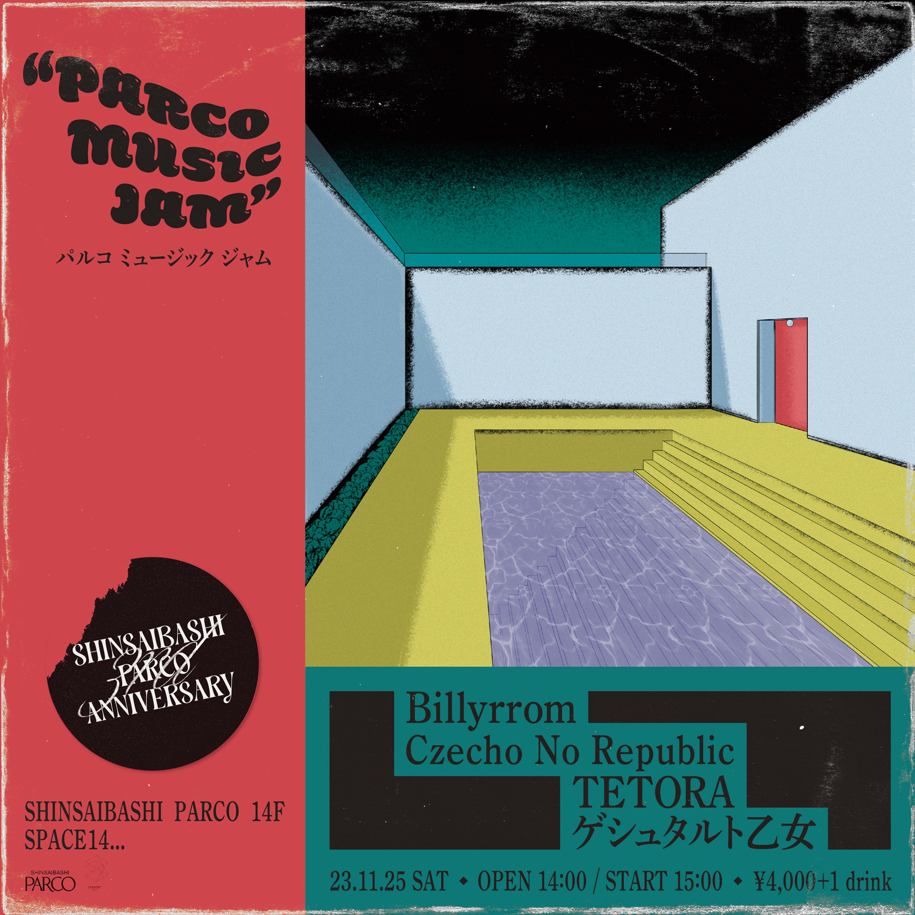 11月25日(土)は、PARCO主催の心斎橋PARCO 3周年記念Fes『PARCO MUSIC JAM』を開催。Billyrrom、TETORA、ゲシュタルト乙女、Czecho No Republicが出演する。