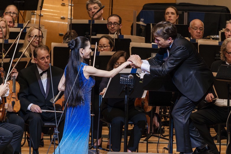「『ボストン・ポップス on the Tour』にソリストとして参加できていることを本当に光栄に思います」と感謝の気持ちを伝え、「2週間前にもボストンで一緒にコンサートをさせていただきまして、貴重な体験だったんですけども、そこでも弾いたアンコール曲をここでも弾かせてもらえないかと思いまして」と言って、同じくガーシュウィンの「I Got Rhythm」をピアノの独奏で聴かせた。超絶テクニックで奏でる音色を観客が聴き入り、演奏が終わると大きな拍手が起こり、席を立って拍手を送る人の姿も多く見られた。夜公演ではガーシュウィンの代わりに、ルロイ・アンダーソンの「ピアノ協奏曲より第3楽章」でオーケストラと競演した。