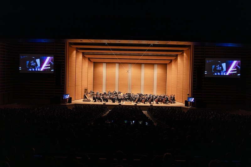 キース・ロックハートが「皆さんご存知の通り、全てははるか遠い銀河の彼方で始まります」と日本語で伝え、英語で“A long time ago, in a galaxy far, far away…” とオープニングで流れるフレーズをきっかけに「スター・ウォーズ」のメインタイトルが会場に響いた。