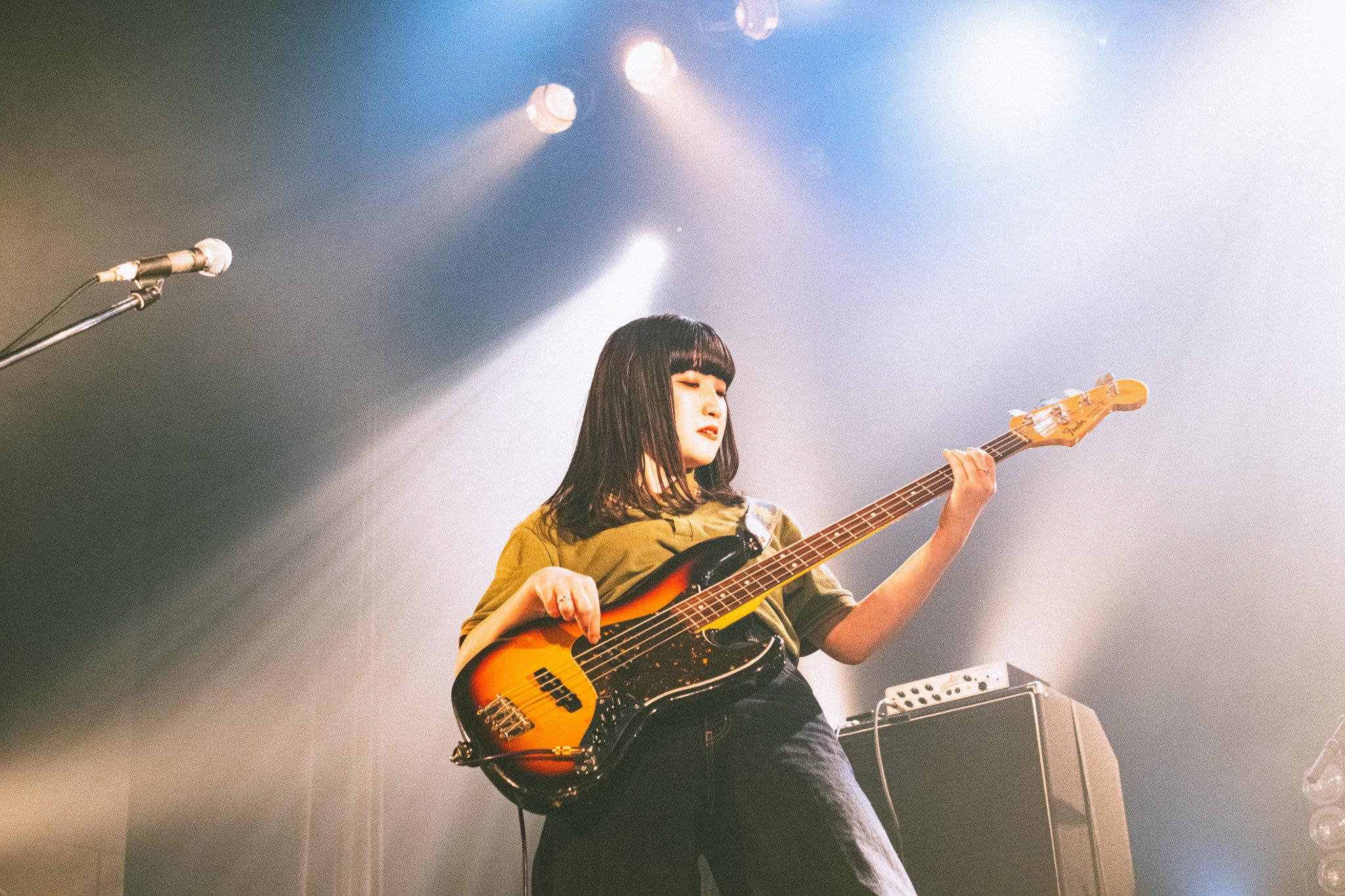 MCでは鷲見が「我々のことを知らない人もたくさんいると思いますが、一生懸命やりますのでどうぞよろしくお願いします!」と挨拶。自由に楽しんで、との言葉に続いては、吉田が「我々が持っております、最大のパンクチューン」と「夢の恋人」を3人向き合って演奏する。波の中にいるような優しいミディアム調の楽曲だが、この曲をパンクチューンと表現する彼らの感性に触れて思わず頬が緩む。一度演奏を止めて溜めを作るシーンも楽曲の良さを引き立てた。「ラブソング」では朴訥とした吉田の歌声が切なさを一層アップ。メロディラインの良さはもちろんだが、のめり込んでしまう魅力があるのが彼らの音楽だ。