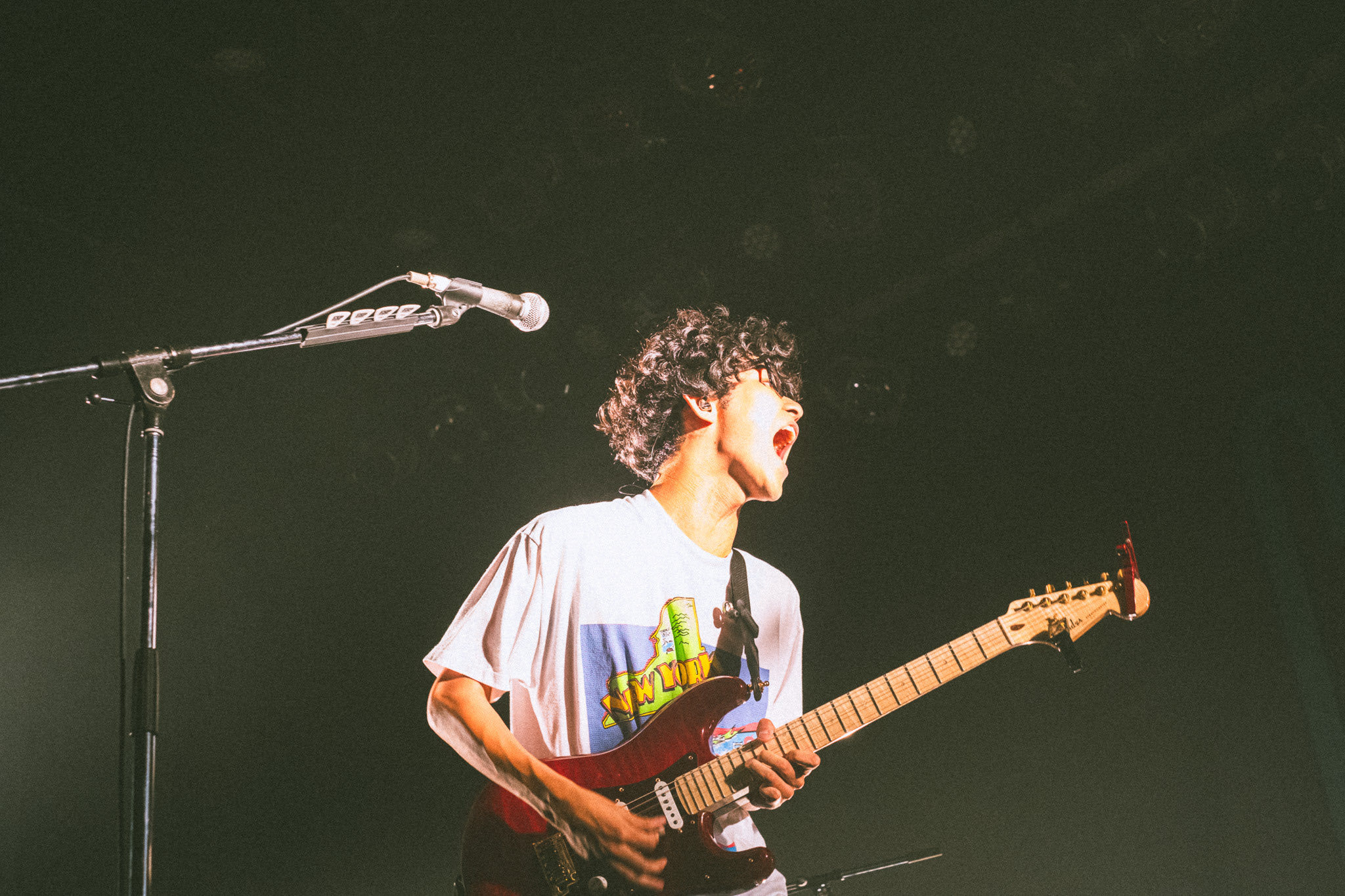 ライブはドラムのカウントから一気に森とサポートギターの2人が振りかぶった「台風の目」でスタート。バンドのアンサンブルの豊かさと、柔らかさの中に芯を感じる森のボーカルにも魅了される。間奏のギターソロでは森の高速ギターテクが炸裂。あまりの巧さにポカンとしてしまうほどだ。それもそのはず、森はイギリスで開かれた16歳以下のギタリストによるエレキギターの世界大会で優勝した経歴を持つ。