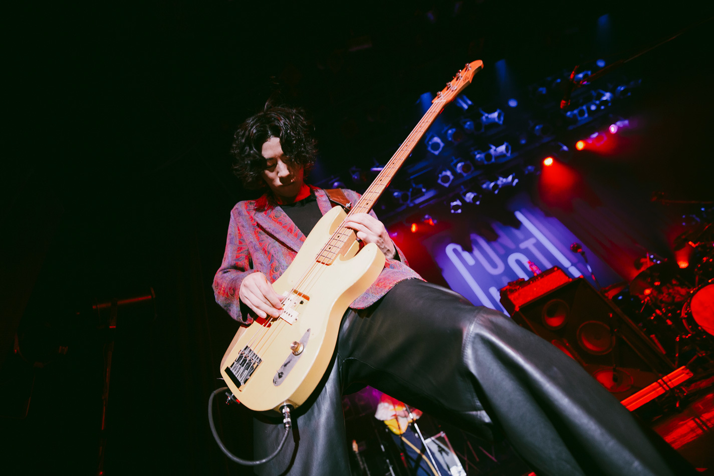 SEが流れ、元気に手を挙げて登場したメンバー。3本のピンスポがそっと3人を照らすと紬衣のギターが勢いよく鳴り響き、楓華・彩楓のコーラスが重なる。聞こえてきたのは1stシングル「ロングスカートは靡いて」。「いけますかBIGCAT!」と紬衣が叫び、ロックサウンドに乗せて伸びやかな歌声を前に放つ。張りのあるボーカルに、むき出しにした感情が乗っかって聞く者の心を揺さぶる。ラスサビでは「歌える?」とオーディエンスにシンガロングを求める場面も。まっすぐに突き抜けるサウンドにはもはや抗えない。骨太ロックの「執着」に続いては「新曲やります!」と「charm」にも収録されている「プードル」を軽快に走らせる。愛犬への気持ちを歌ったという疾走感たっぷりの1曲。視線を交わしながら笑う3人が本当に楽しそうだった。