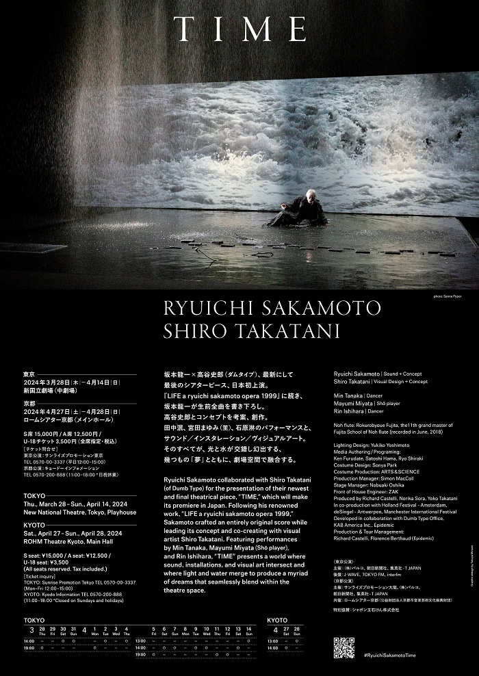 2024年3月28日(木)より東京・新国立劇場、2024年4月27日(土)より京都・ロームシアター京都にて上演される、RYUICHI SAKAMOTO + SHIRO TAKATANI『TIME』。この度、アーティストコメントと新ビジュアルが公開となった。