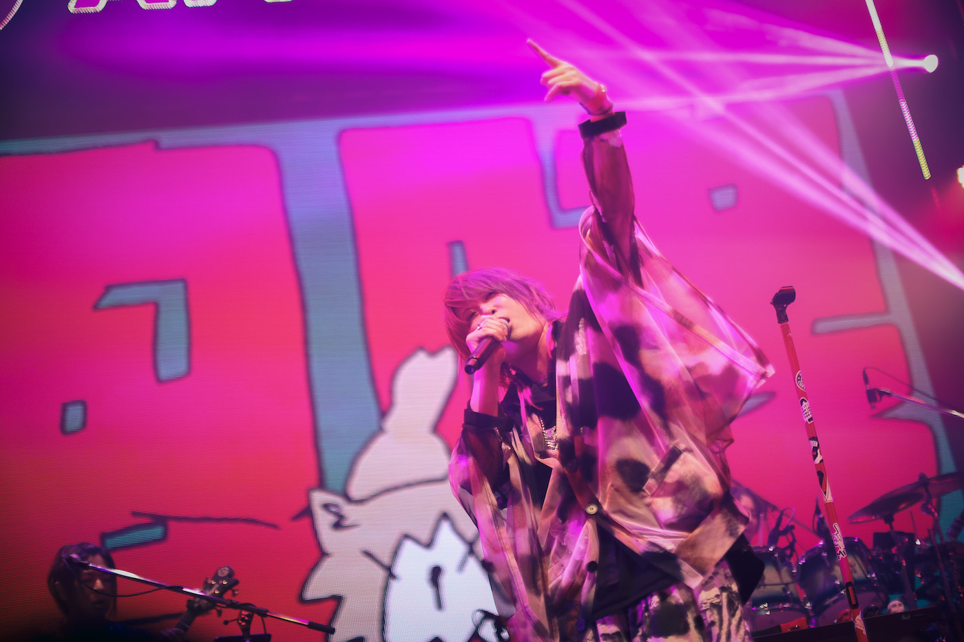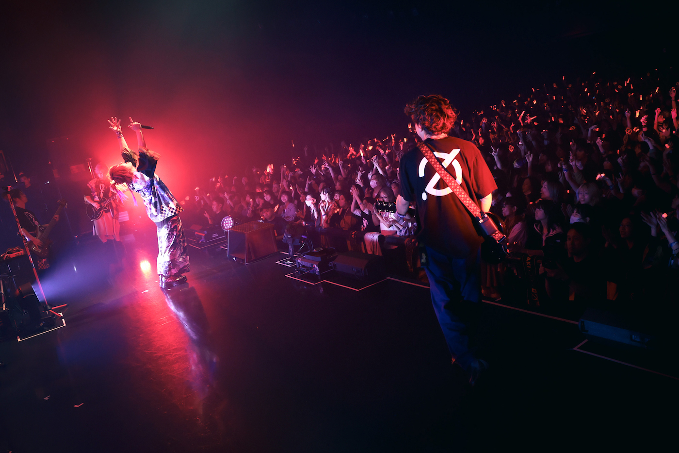 「今日もブっ放していくぞ!」と気合い入れしてスラップベースに歌声を絡ませた「イスカノサイ」では、オーディエンスが大合唱。その後のMCで「(コロナ禍だった)去年のツアーではみんなの声聴けなかったんだよな。こういう声があればいくらでも復活できる」とあらきが言ったが、ステージと客席との熱いやり取りがあってこそライブだ、とあらためて思う。