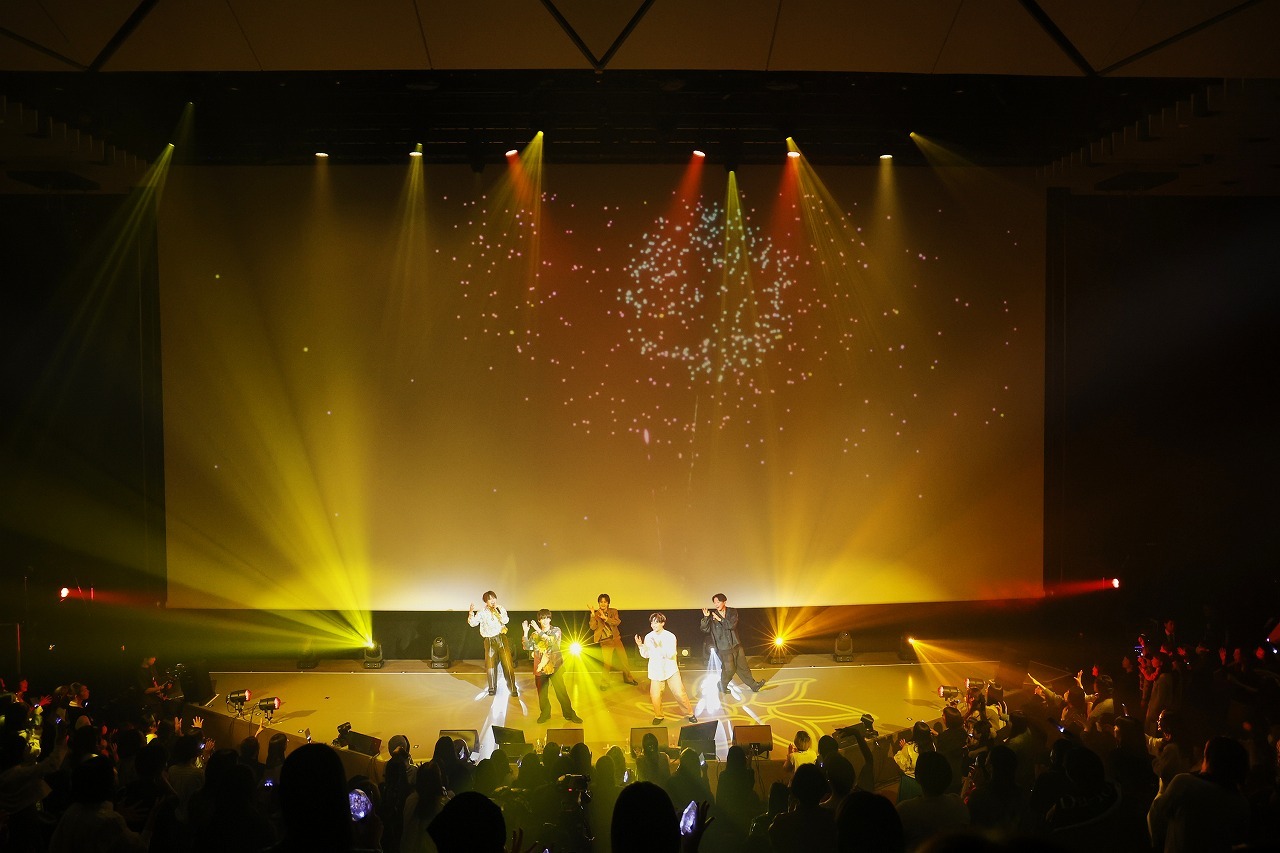最初にステージに登場したのは、LDH JAPAN×HYBE LABELS JAPANの初共同プロジェクトから誕生したガールズグループのMOONCHILD。彼女たちは5月にリリースされたデビューEP「DELICIOUS POISON」から「Don’t Blow It!」と「Photogenic」を届けていく。高い歌唱力とダンススキルはもちろんのこと、ときに笑顔で、ときにクールにと、豊かな表情でも観客を魅了していった。ANRIが「ちょっとガーリーでちょっとエレガント」だと称した黒と白を基調にしたこの日の衣装は今日が初披露。彼女たちはそんな新衣装で、11月29日リリースの2nd EPタイトル曲「Friends Are For」をフルコーラスで初お披露目。キャッチーな同曲に、会場からは自然とクラップが巻き起こり、明るいムードでトップバッターのアクトを終えた。ライブ後に初披露の感想を聞かれたMIRANOは「明るくて楽しい曲なので、自然とお客様の笑顔も増えた気がして、うれしい気持ちでパフォーマンスすることができました」、HANAは「最高に気持ちよかったです」と清々しい表情でステージをあとにした。
