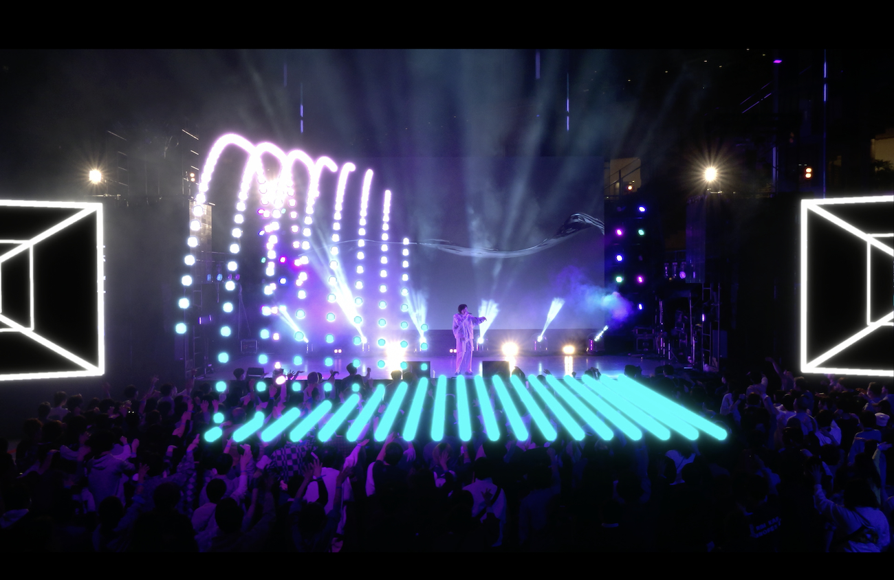 今回で8回目を迎える『イノフェス』。初日13日は開業したばかりの虎ノ門ヒルズ ステーションタワー内「TOKYO NODE HALL」で実施。14日と15日は六本木ヒルズにて開催し、大型の錯視効果LEDやARを用いた演出で、テクノロジーとエンタテインメントを融合した最先端ライブを六本木ヒルズより届けた。