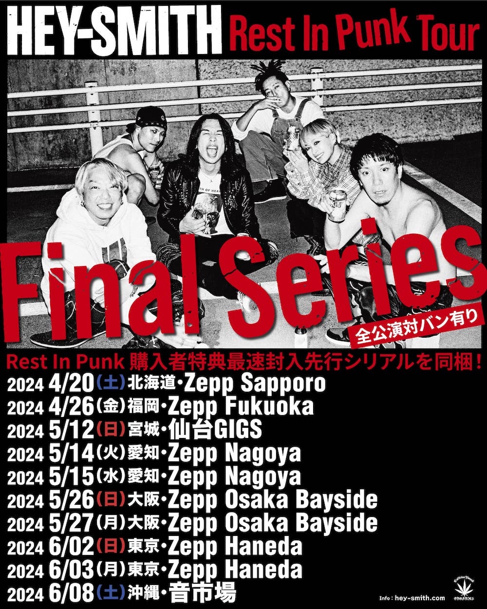 HEY-SMITHが『「Rest In Punk Tour」Final Series』として、全国のZeppを含む10公演の開催を発表した。