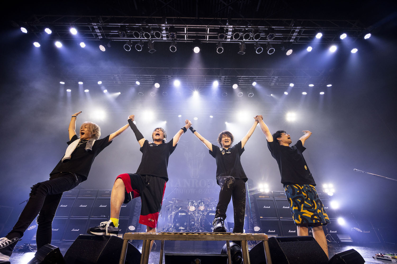 すかさず放たれるのは、重みのあるグルーヴを軽やかに熱く聴かせる「Treasure Pleasure」と「Punky Funky Love」。KISHOWの分厚い歌声が先導するキレのいいファンクも、GRANRODEOの得意技だ。今年3月の日本武道館公演を”Rodeo Jet Coaster”と命名していたGRANRODEOだが、とくに今回のツアーは、彼らのワンマンこそが、絶対にお客さんを飽きさせないアトラクションに次々と誘う、テーマパークそのものなのだと実感させてくれる。