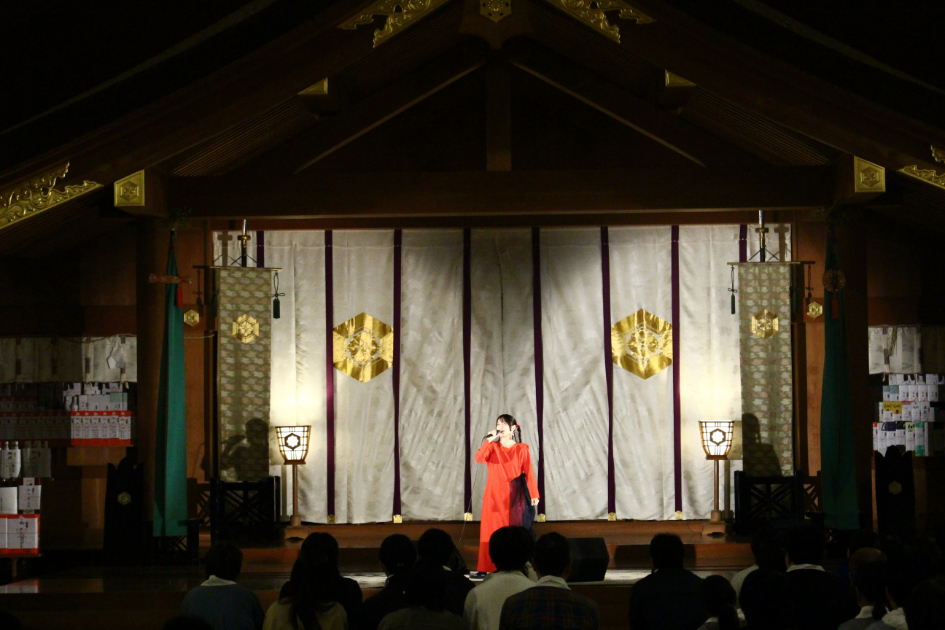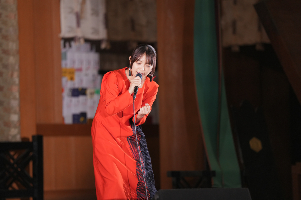10⽉28日(土)、島根県・出雲市で開催された映画『神在月のこども』公開2周年フェスティバルでの出雲⼤社・神楽殿“奉納上映”イベントにmiwaが出演した。