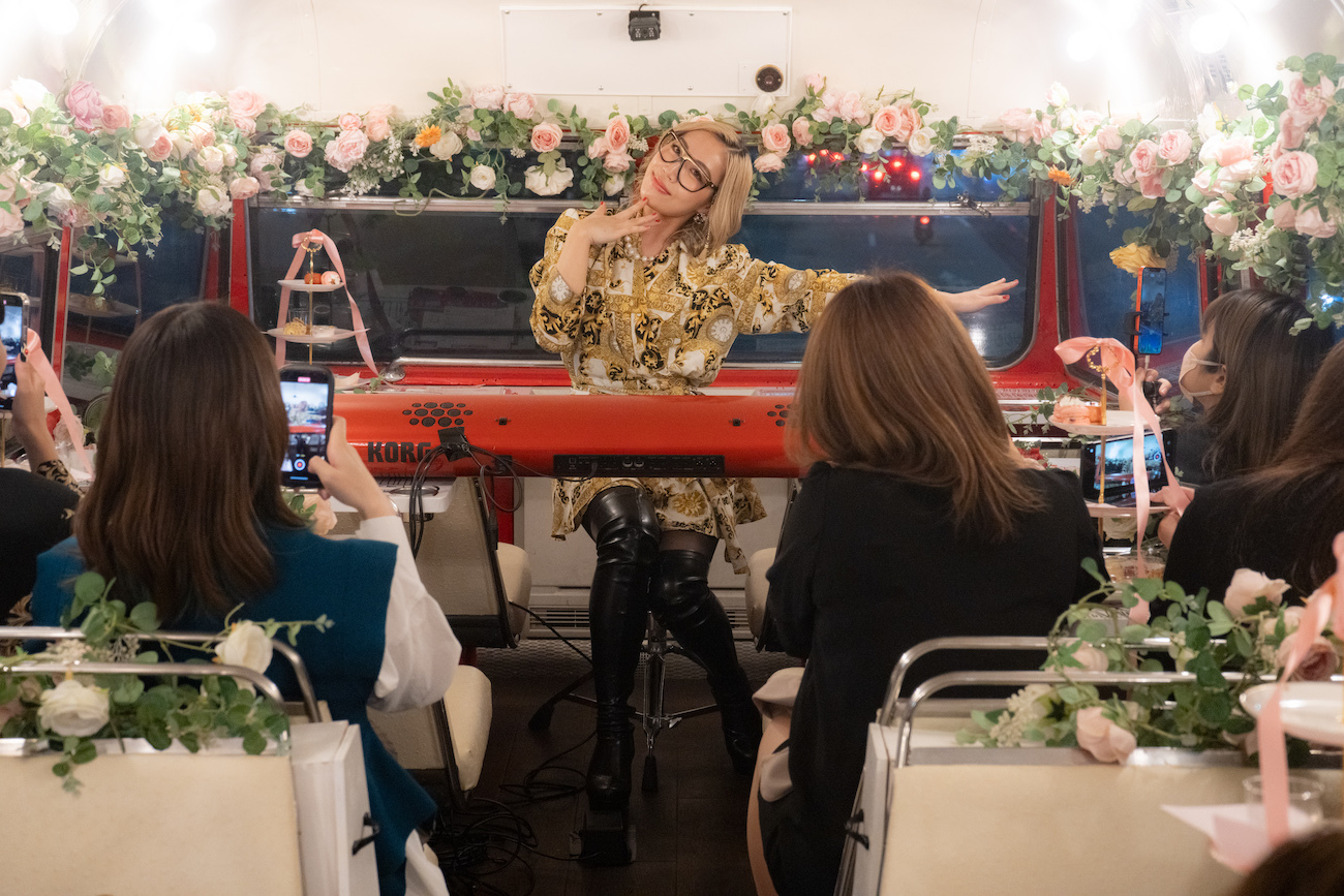この日披露されたのは、オリジナル曲に加え、カバーアルバム『お愛集』の中から「難破船」「異邦人」「愛のメモリー」などのメドレーで、バスの車内であることを感じさせない迫力満載のパフォーマンスにファンは大いに盛り上がった。なお、ピアノ演奏はTikTokでも生配信された。