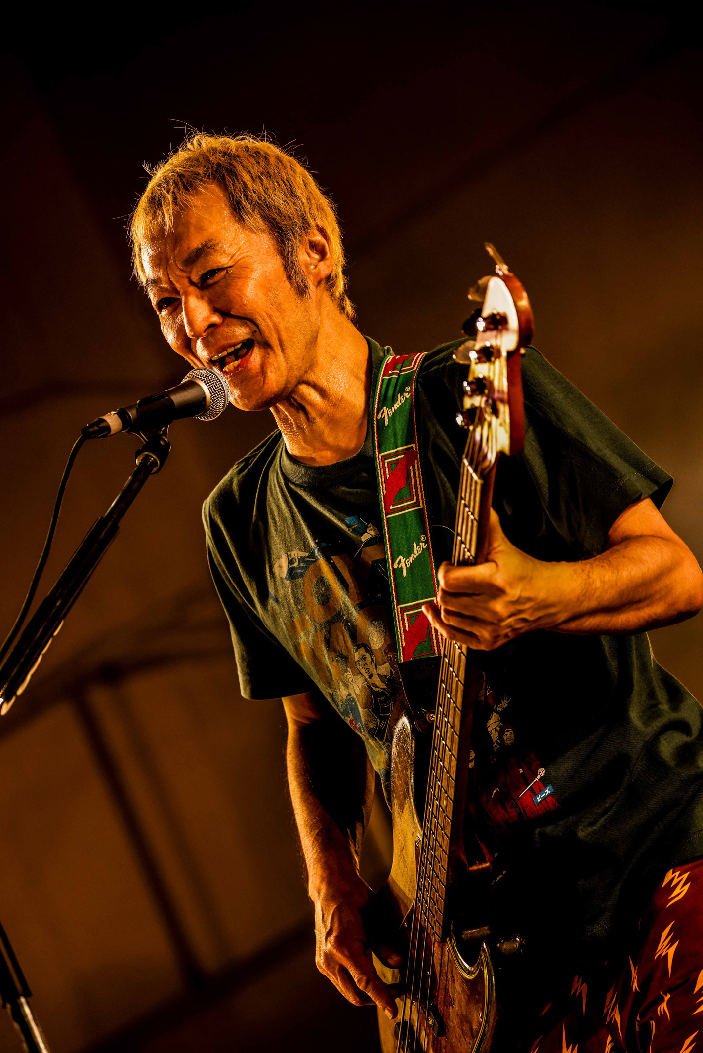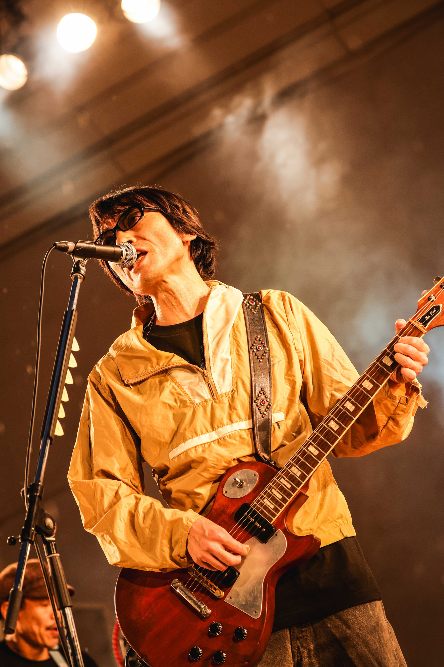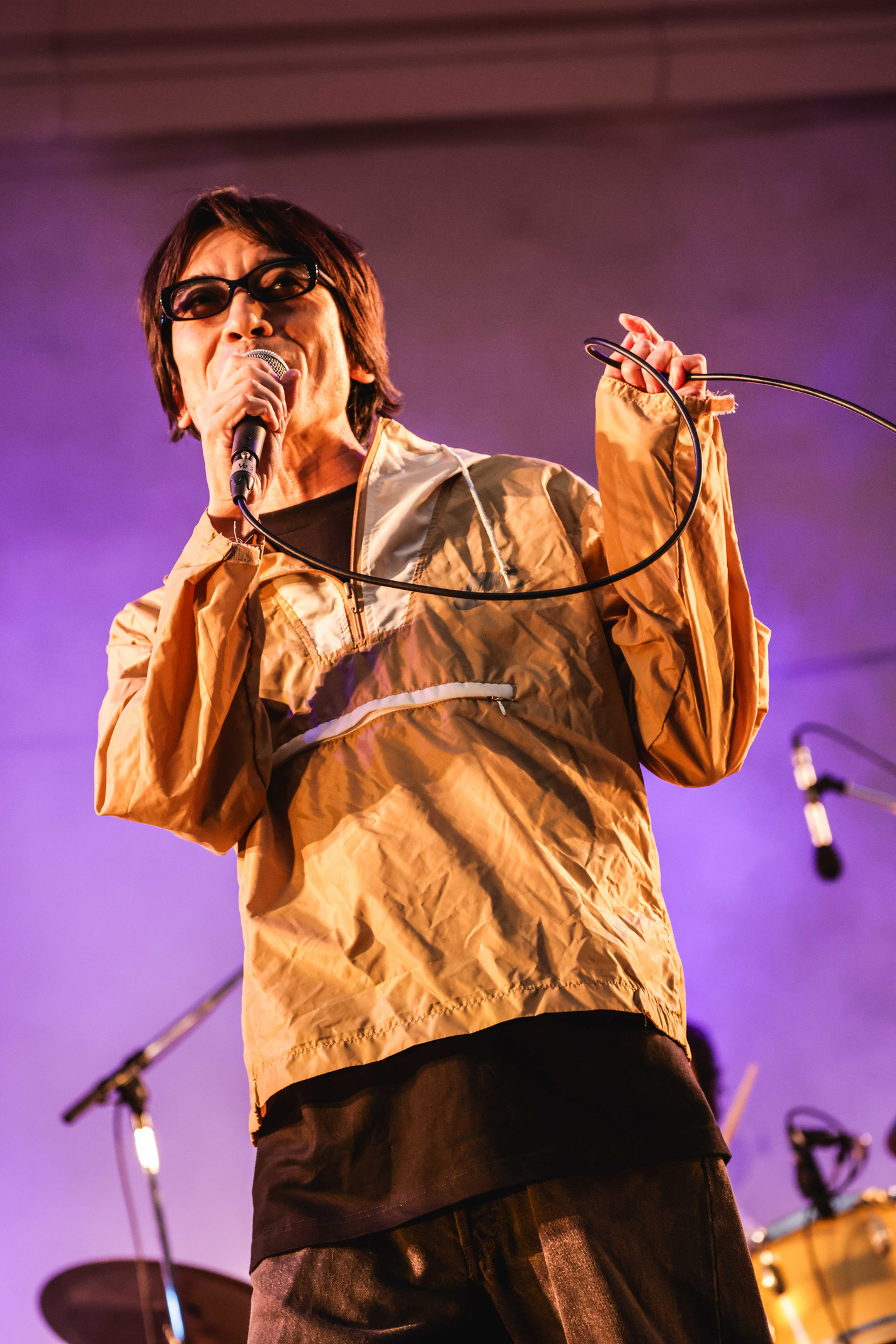 自身の楽曲「Eeyo」が登場SEとして鳴り響き、鈴木圭介が「行ってきまーす!」と元気よく声をあげて、昨年リリースされた「行ってきまーす」からスタート。圭介のハープが鳴り狂う。初っ端から絶好調さを感じる。続く「どろぼう」は26年前にシングルのカップリングで収録された当時でも尖っていた楽曲だが、今の方が尖ってソリッドに新鮮に激しく聴こえてくる。そして最新曲「気持ちいい顔でお願いします」へ、新旧の楽曲が何の違和感も無く共に最新のエエ状態で鳴らされている。