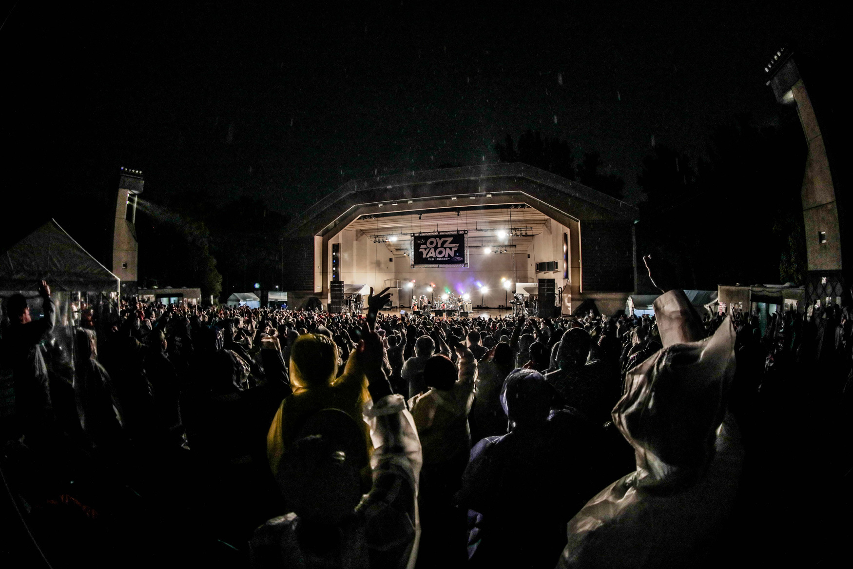 関西の名物イベンター・清水音泉が主催するライブイベント『OYZ NO YAON』が10月14日(土)に大阪城音楽堂にて開催された。「Re:6~朱夏の逆襲~」というたいそうなサブタイトルが付けられたが、要は6回目であり、中国の陰陽五行思想でいうところの青春の次で60歳までを示す言葉が朱夏である。逆襲は舞台後方に吊り上げられたイベントバックドロップの壮大な宇宙デザインからも映画『スター・ウォーズ/帝国の逆襲』を彷彿とさせる。まぁ、オヤジ世代が野音で暴れるぞということです、はい。今、当たり前のように書いているが、始まった2016年はクセがすごいタイトルのイベントだなと思ったのを未だに覚えている。ぐちゃぐちゃと長く序文を書いても仕方ないので、各演者皆様のライブレポートでクセのすごみ……すなわちイベントのチャームポイントを感じて欲しい。