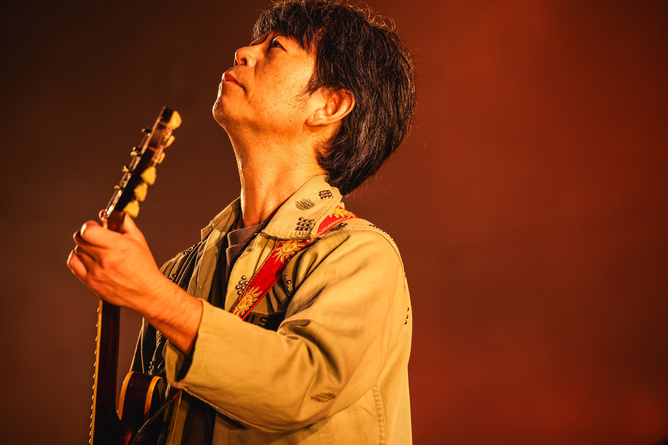歌い出しの<夜道を一人>という小さな世界から、突然、大きな世界の話になっていく……。もちろん大昔から知っていて大好きな楽曲なのに呆気に取られてしまう。そして、一気に雨が降る。ヤバイ瞬間とは、こういうことを言うのだろう。そして<人間はもう終わりだ!>と叫ばれる「人間はもう終わりだ!」。社会の矛盾を徹底的に逃さなくて、弱者には優しい真心なんて小難しくて堅苦しいけど、とにかく真心の歌はとんでもないのだ。そんな素晴らしい畳み込み方をぶち込みながら、MCでは前回は野戦病院と思ったけど、今回は墓場だとか、オヤジというか後期高齢者だとか、ペチャクチャ喋るYO-KING&桜井!