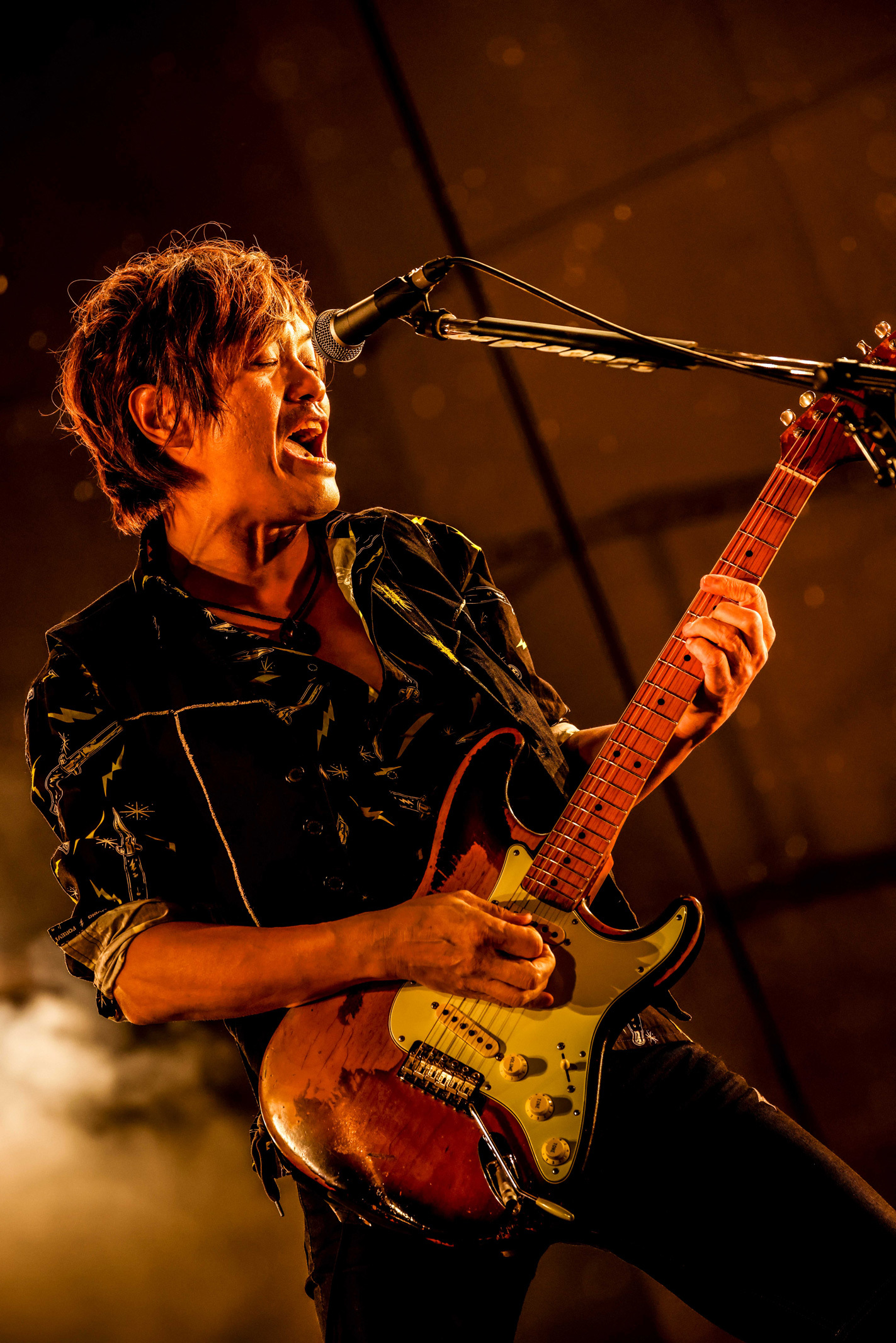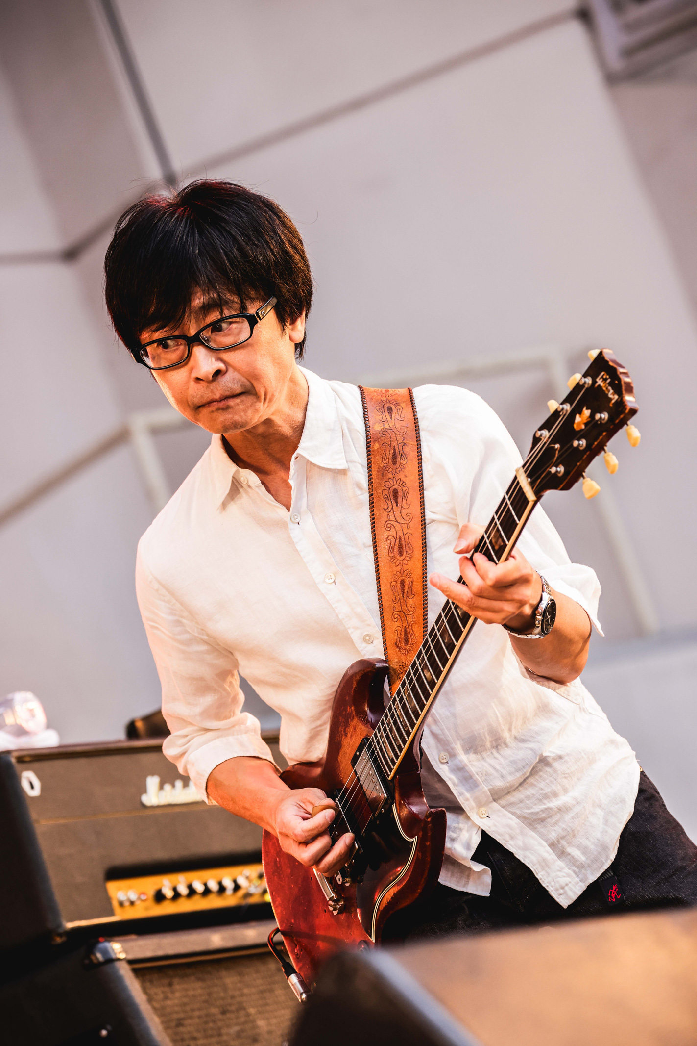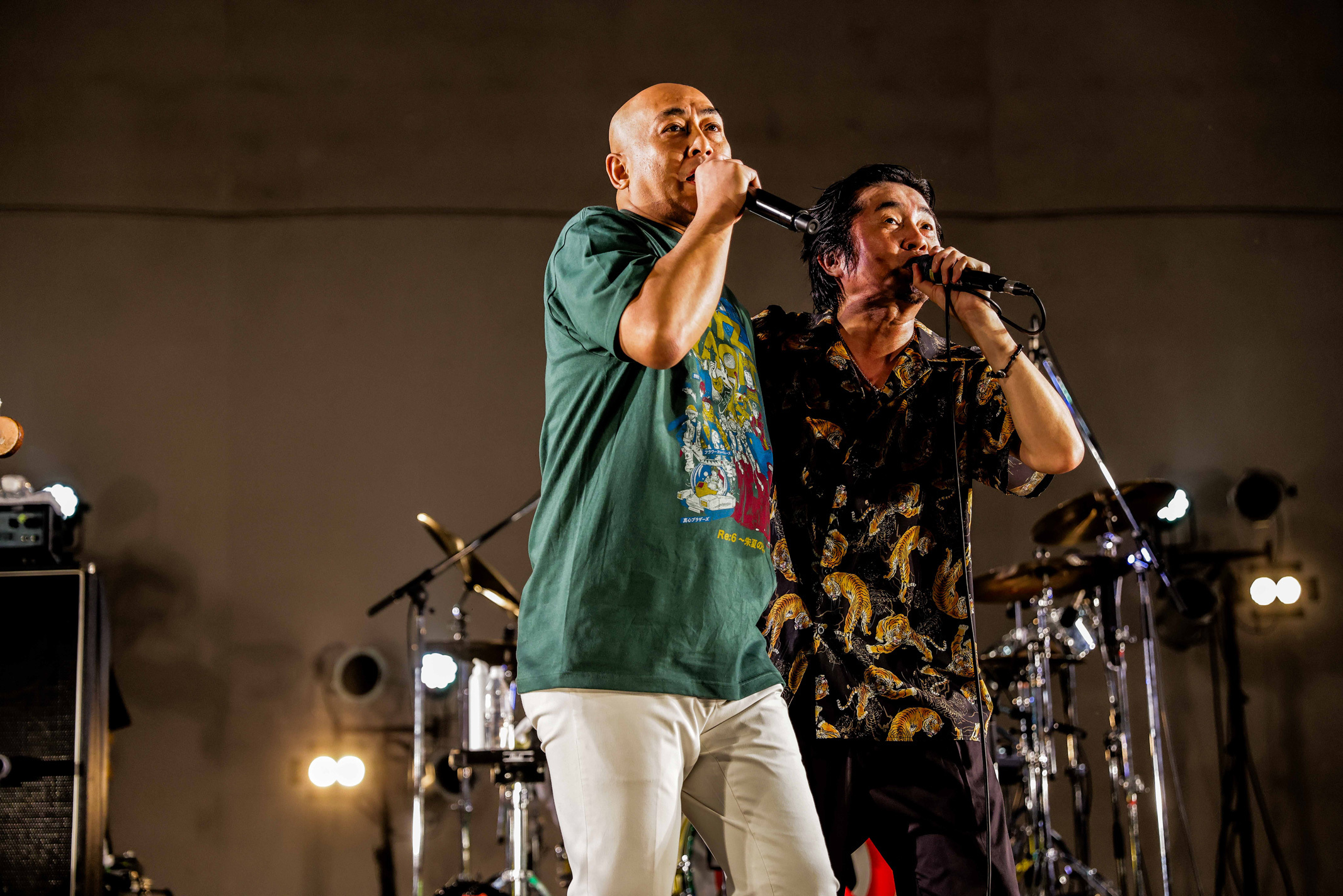 三番手は真心ブラザーズ。舞台上に登場したYO-KINGと桜井秀俊が一瞬コソコソ話をしている。そして、YO-KING「こんにちは~!」&桜井「うるせいよ!」というロック版錦鯉が冒頭で披露された。相変わらず茶目っ気あるな~なんてノホホンと思っていたのも束の間、何と1曲目から「拝啓、ジョン・レノン」。あくまで個人的な勝手な意見だが、咄嗟に今日の真心は攻めている……、そんな根拠無き確信があった。